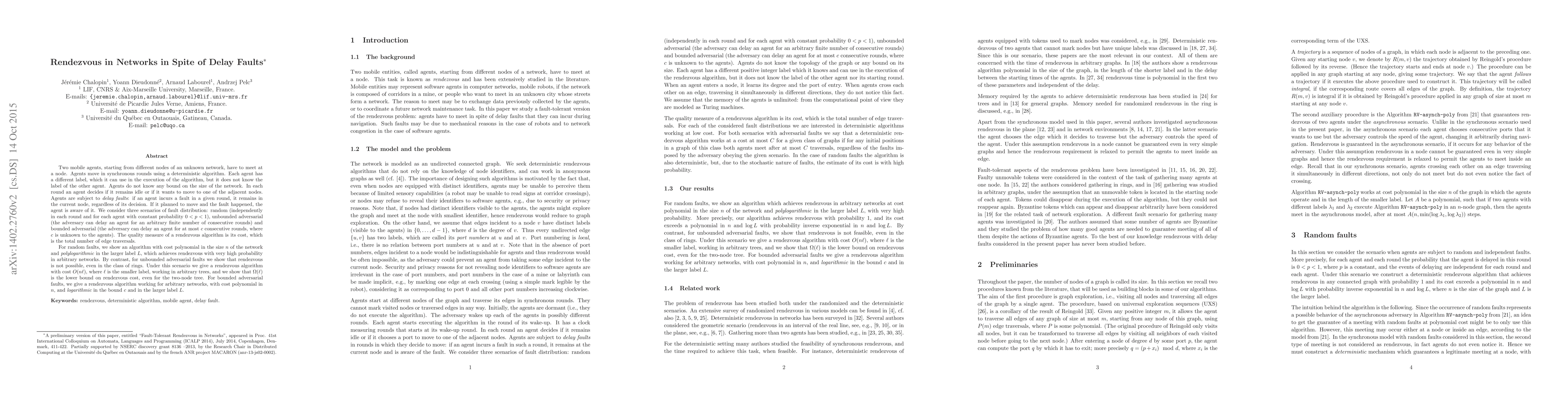 This paper explores rendezvous algorithms for two mobile agents in an unknown network, subject to delay faults. It presents efficient algorithms for random and bounded adversarial faults, achieving polynomial cost in network size and logarithmic in labels. For unbounded adversarial faults, it proves infeasibility of rendezvous and provides a cost-effective algorithm for trees.