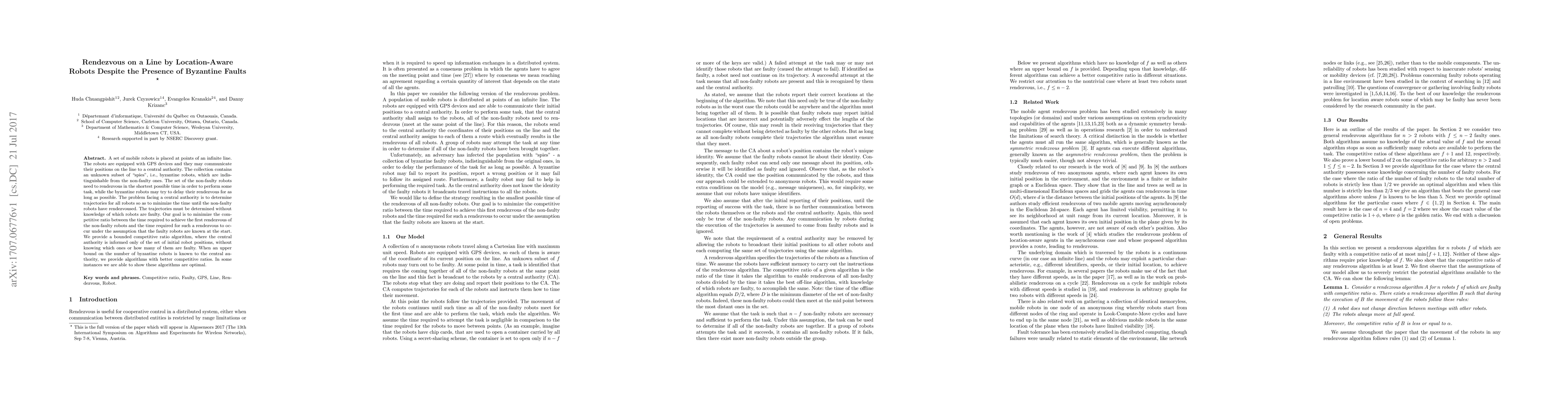 Researchers develop an algorithm to help robots rendezvous on a line despite faulty robots trying to delay their arrival, achieving a bounded competitive ratio.