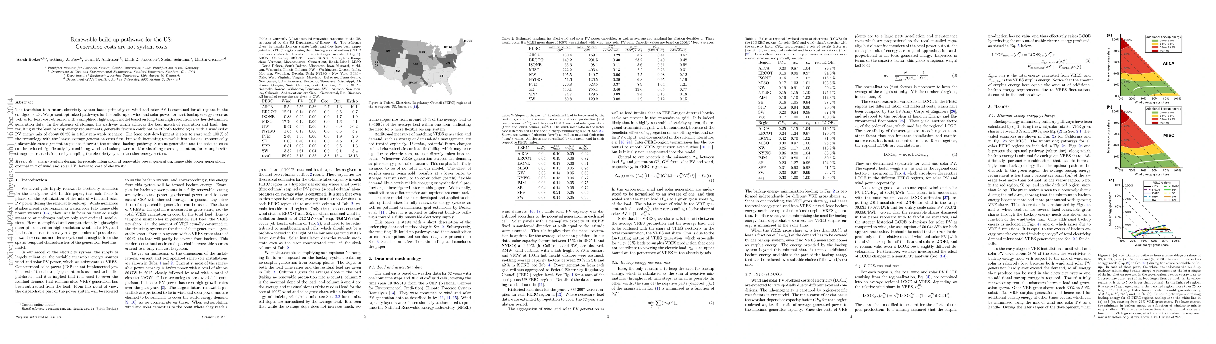 This research examines renewable energy transition in the US, finding that a wind/solar PV mix of 80/20 minimizes backup energy needs. The least cost pathway prioritizes the technology with lowest generation costs initially, but shifts to minimize backup as renewable capacity increases. Both storage solutions and coupling with other energy sectors can reduce excess generation and associated costs.