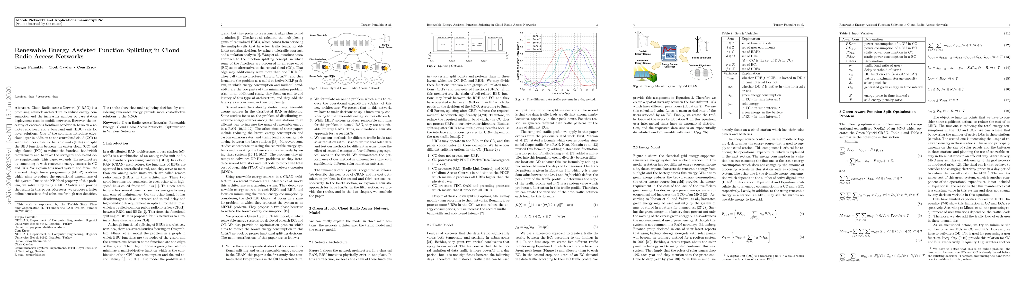 This paper explores integrating renewable energy into Cloud-Radio Access Networks (C-RAN) to optimize function splitting between centralized and edge clouds, reducing fronthaul bandwidth and operational costs. It formulates a mixed-integer linear programming problem to minimize expenditures and proposes a heuristic for high user densities, demonstrating cost-effective benefits for mobile network operators.
