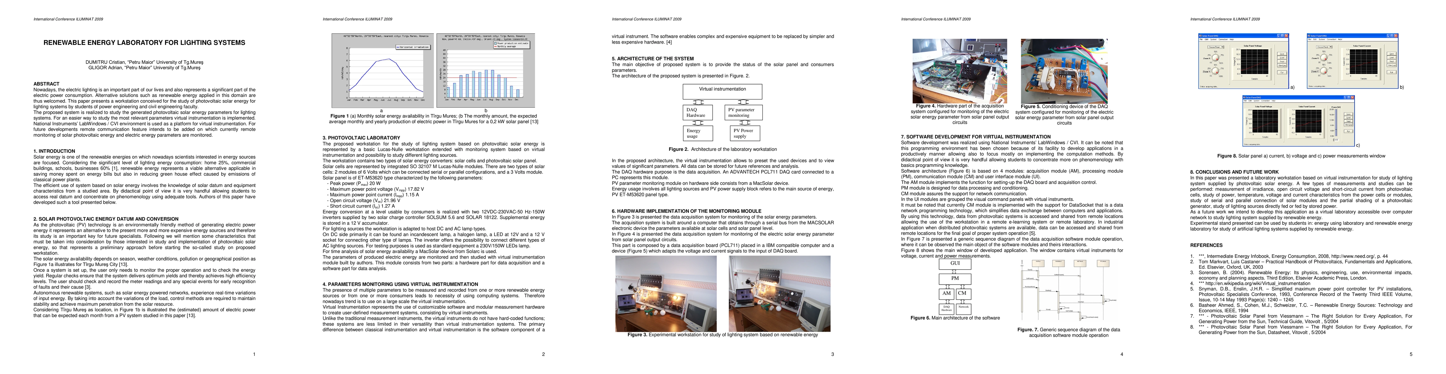 Nowadays, the electric lighting is an important part of our lives and also represents a significant part of the electric power consumption. Alternative solutions such as renewable energy applied in this domain are thus welcomed. This paper presents a workstation conceived for the study of photovoltaic solar energy for lighting systems by students of power engineering and civil engineering faculty. The proposed system is realized to study the generated photovoltaic solar energy parameters for lighting systems. For an easier way to study the most relevant parameters virtual instrumentation is implemented. National Instruments LabWindows CVI environment is used as a platform for virtual instrumentation. For future developments remote communication feature intends to be added on which currently remote monitoring of solar photovoltaic energy and electric energy parameters are monitored.