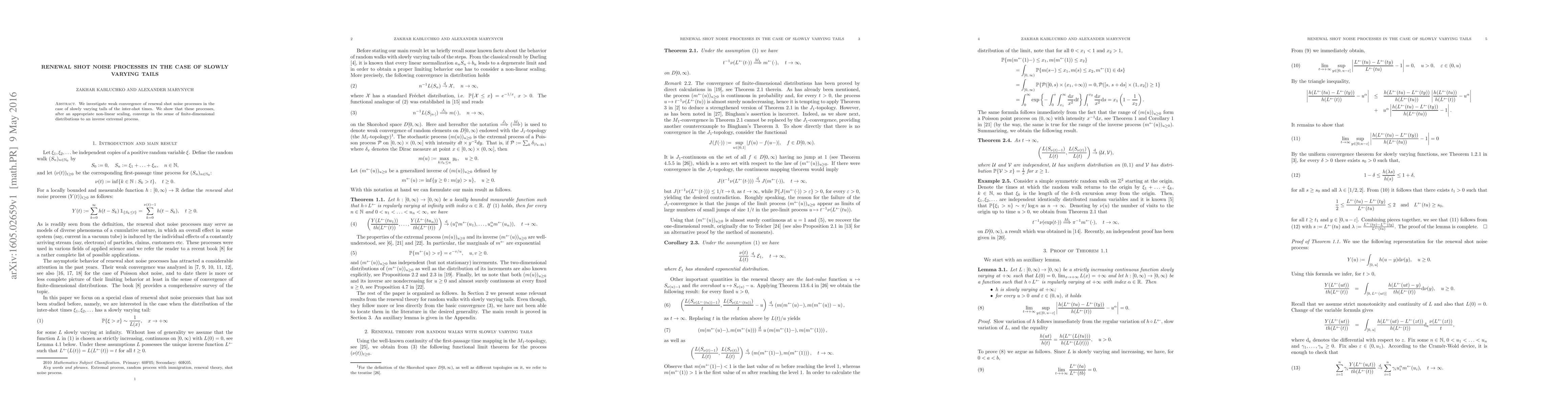 This paper examines the weak convergence of renewal shot noise processes with inter-shot times having slowly varying tails. It demonstrates that, under suitable non-linear scaling, these processes converge to an inverse extremal process in terms of finite-dimensional distributions.