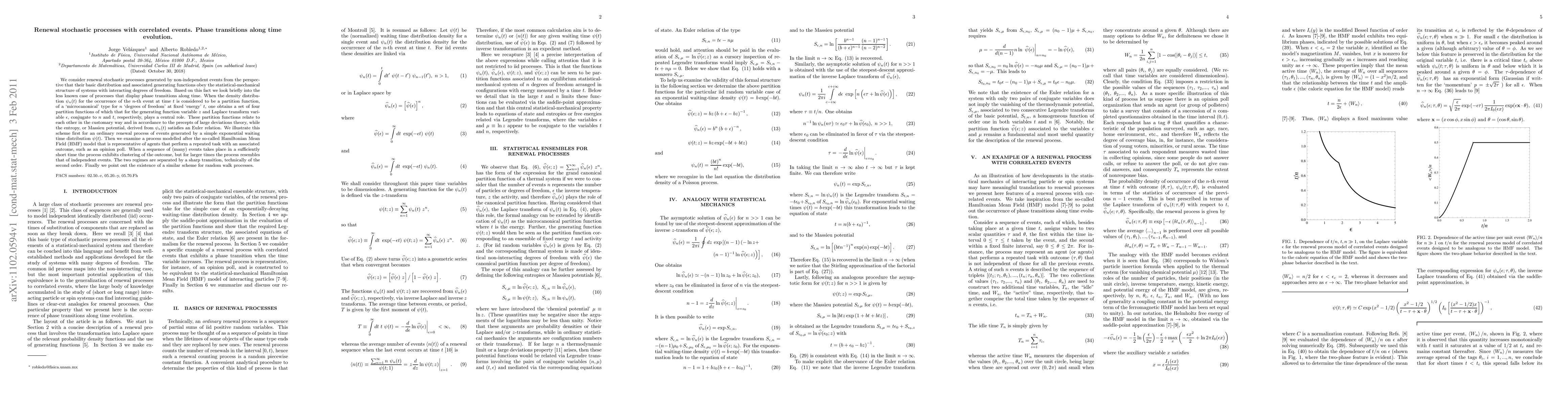 Researchers model renewal stochastic processes with correlated events to study phase transitions along time evolution, revealing a new framework for understanding complex systems.