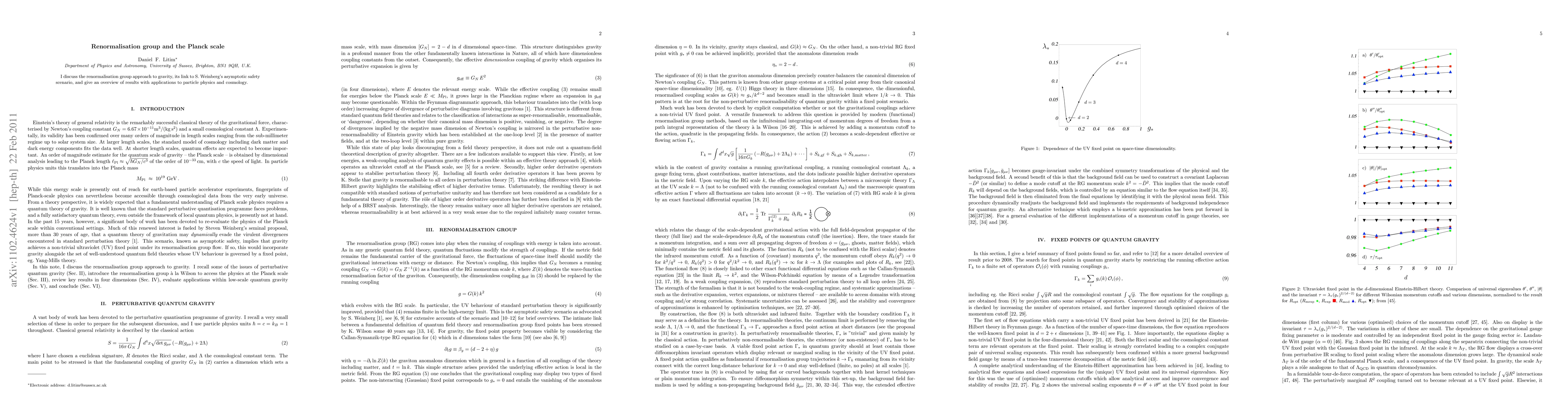 I discuss the renormalisation group approach to gravity, its link to Steven Weinberg's asymptotic safety scenario, and give an overview of results with applications to particle physics and cosmology.