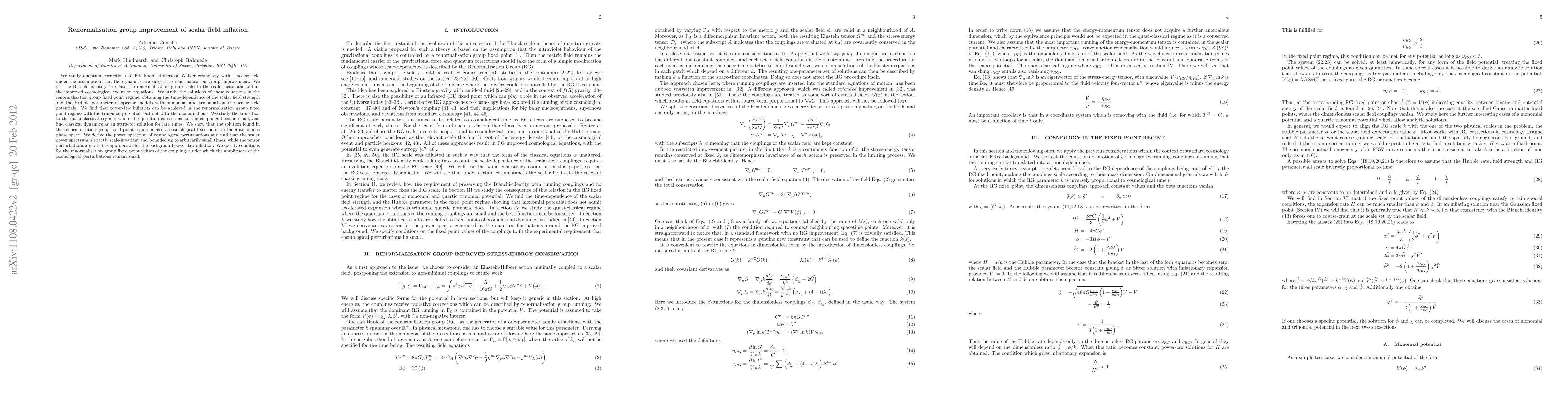 This paper investigates the impact of renormalisation group improvement on scalar field inflation in the context of Friedmann-Robertson-Walker cosmology. It finds that power-law inflation can be achieved with trinomial potentials but not monomial ones, and demonstrates that classical dynamics emerge as an attractor in the quasi-classical regime.