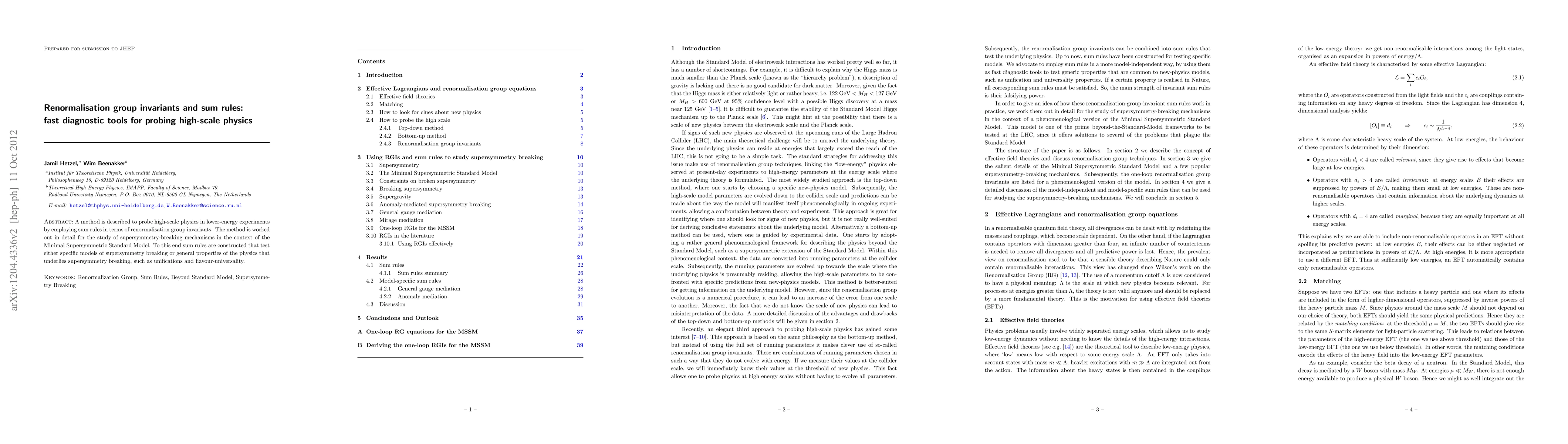 This paper introduces a method using sum rules of renormalisation group invariants to probe high-scale supersymmetry-breaking mechanisms in lower-energy experiments, focusing on testing specific models and general properties like unification in the Minimal Supersymmetric Standard Model.
