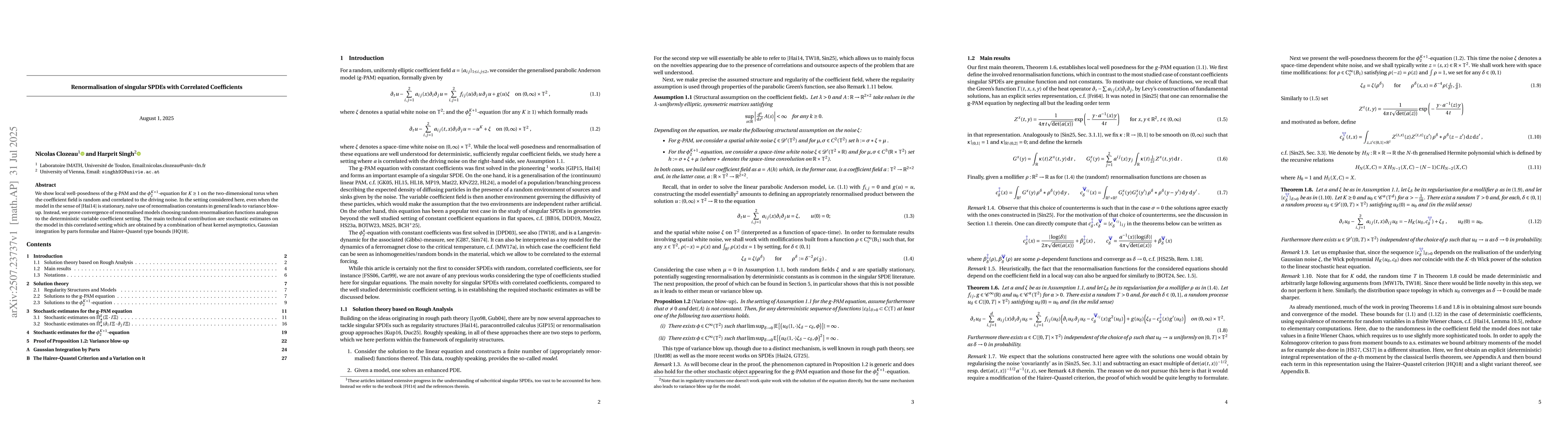 We show local well-posedness of the g-PAM and the $\phi^{K+1}_2$-equation for $K\geq 1$ on the two-dimensional torus when the coefficient field is random and correlated to the driving noise. In the setting considered here, even when the model in the sense of [Hai14] is stationary, naive use of renormalisation constants in general leads to variance blow-up. Instead, we prove convergence of renormalised models choosing random renormalisation functions analogous to the deterministic variable coefficient setting. The main technical contribution are stochastic estimates on the model in this correlated setting which are obtained by a combination of heat kernel asymptotics, Gaussian integration by parts formulae and Hairer--Quastel type bounds [HQ18].