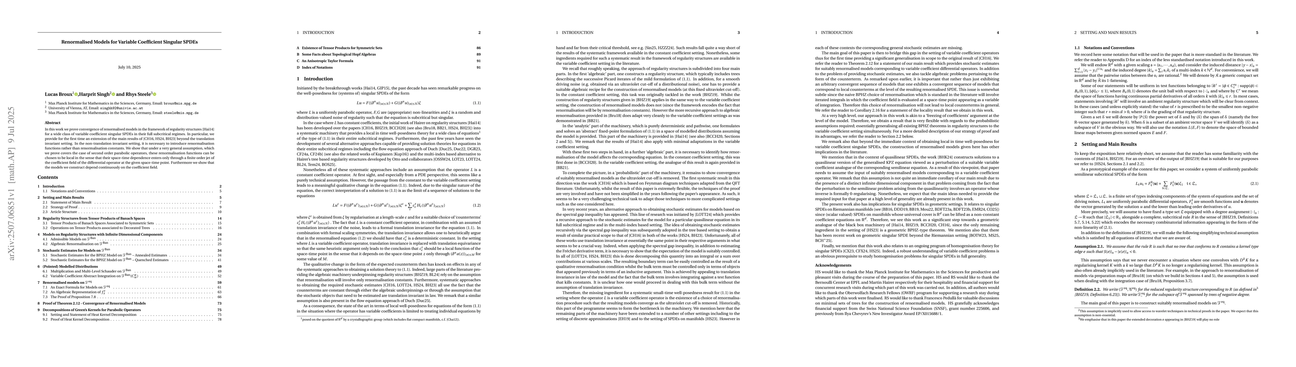 In this work we prove convergence of renormalised models in the framework of regularity structures [Hai14] for a wide class of variable coefficient singular SPDEs in their full subcritical regimes. In particular, we provide for the first time an extension of the main results of [CH16, HS24, BH23] beyond the translation invariant setting. In the non-translation invariant setting, it is necessary to introduce renormalisation functions rather than renormalisation constants. We show that under a very general assumption, which we prove covers the case of second order parabolic operators, these renormalisation functions can be chosen to be local in the sense that their space-time dependence enters only through a finite order jet of the coefficient field of the differential operator at the given space-time point. Furthermore we show that the models we construct depend continuously on the coefficient field.