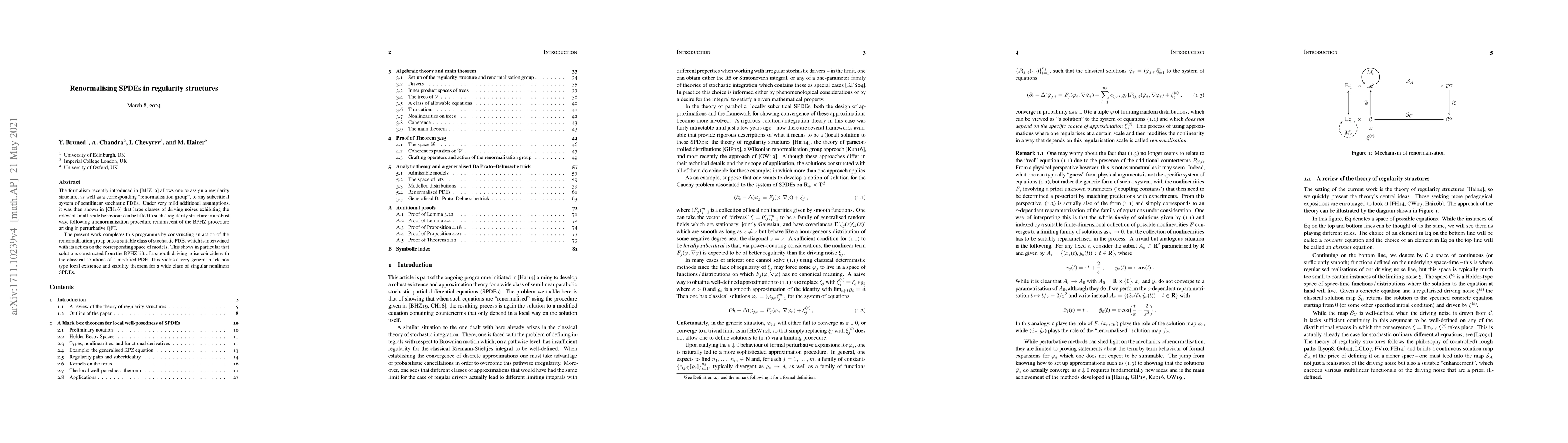 This paper constructs a renormalisation group action for stochastic partial differential equations (SPDEs) within regularity structures, demonstrating that solutions derived from the BPHZ lift of smooth driving noise match classical solutions of modified PDEs. This establishes a general local existence and stability theorem for a broad class of singular nonlinear SPDEs.