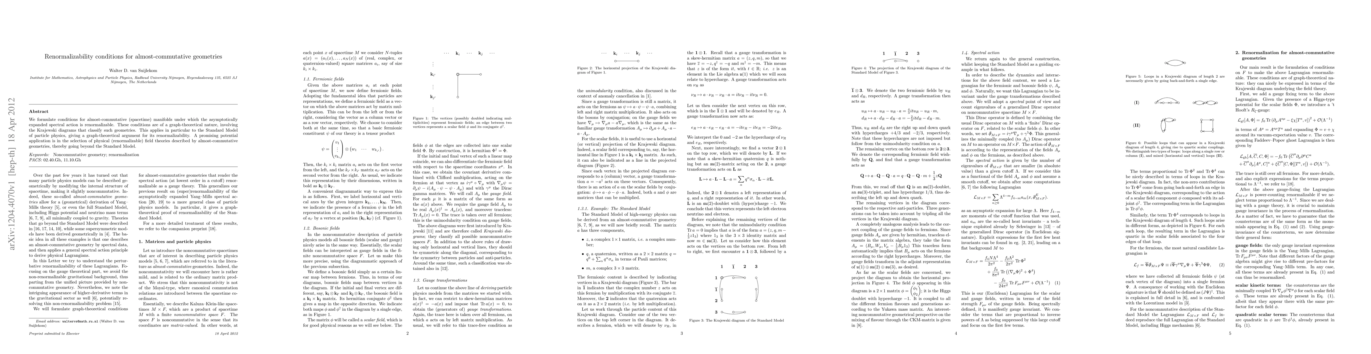 This paper establishes graph-theoretical renormalizability conditions for almost-commutative geometries using Krajewski diagrams, particularly applying to the Standard Model's renormalizability and potentially aiding in the selection of new physical field theories beyond the Standard Model.