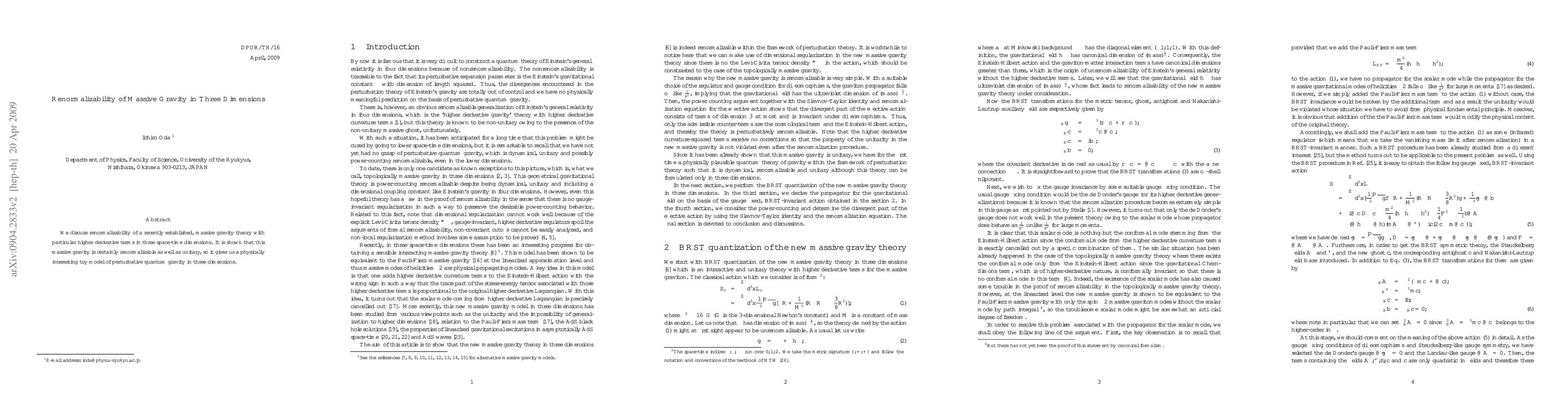 This paper demonstrates that a newly proposed massive gravity theory with higher derivative terms in three dimensions is both renormalizable and unitary, providing a viable model for studying perturbative quantum gravity in three-dimensional space-time.