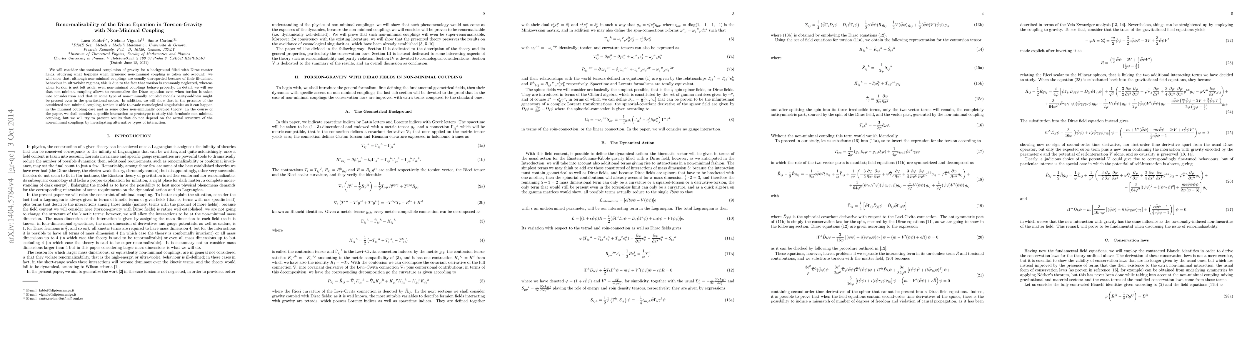 We will consider the torsional completion of gravity for a background filled with Dirac matter fields, studying what happens when fermionic non-minimal coupling is taken into account: we will show that, although non-minimal couplings are usually disregarded because of their ill-defined behaviour in ultraviolet regimes, this is due to the fact that torsion is commonly neglected, whereas when torsion is not left aside, even non-minimal couplings behave properly. In detail, we will see that non-minimal coupling allows to renormalize the Dirac equation even when torsion is taken into consideration and that in some type of non-minimally coupled models parity-oddness might be present even in the gravitational sector. In addition, we will show that in the presence of the considered non-minimal coupling, torsion is able to evade cosmological singularities as it can happen in the minimal coupling case and in some other non--minimally coupled theory. In the course of the paper, we shall consider a specific interaction as prototype to study this fermionic non-minimal coupling, but we will try to present results that do not depend on the actual structure of the non-minimal couplings by investigating alternative types of interaction.