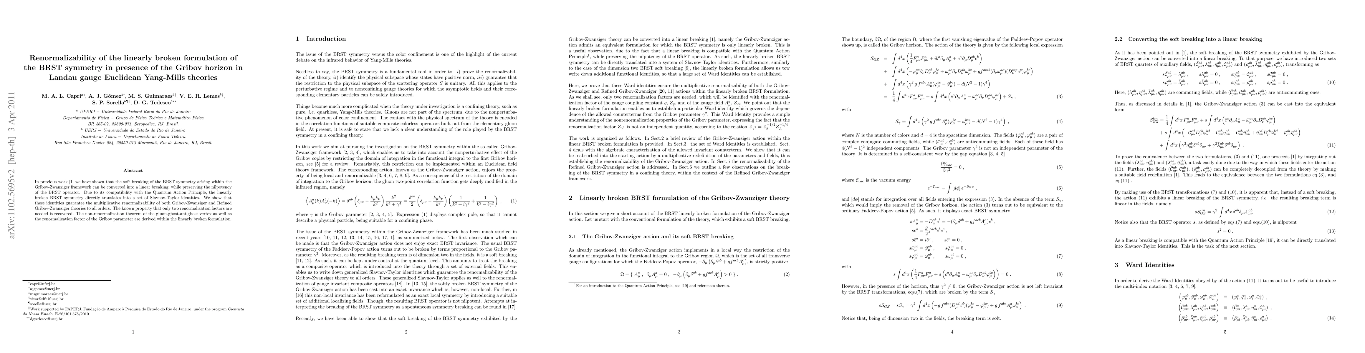 This paper demonstrates that the linearly broken BRST symmetry, derived from the Gribov-Zwanziger framework, ensures the multiplicative renormalizability of Euclidean Yang-Mills theories. It also recovers known properties, such as the requirement of only two renormalization factors, and derives the non-renormalization theorem for the gluon-ghost-antighost vertex.