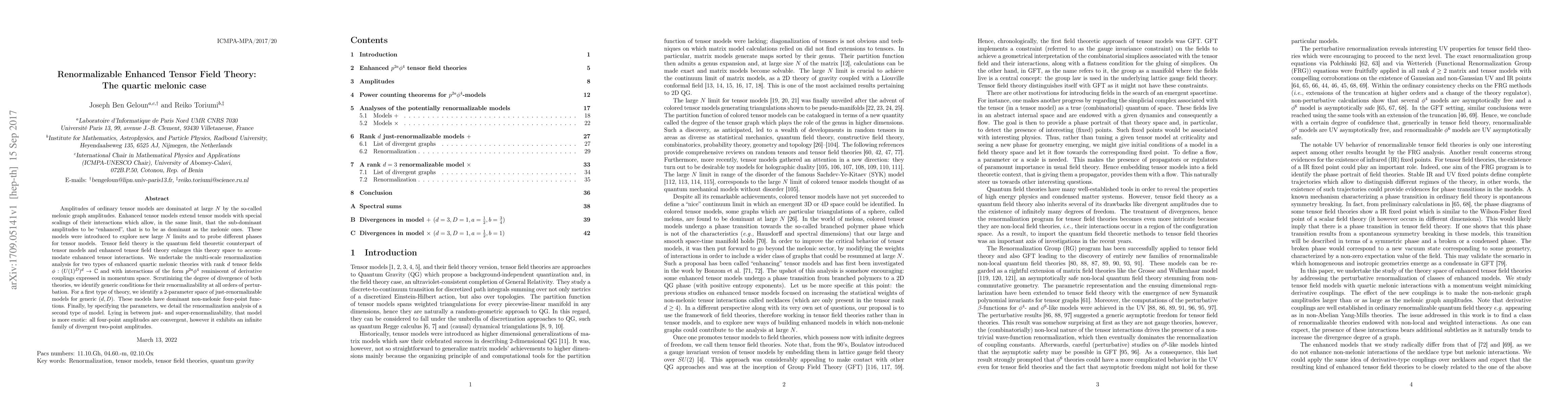 The paper presents a detailed multi-scale renormalization analysis for enhanced quartic melonic theories, identifying conditions for renormalizability and demonstrating the existence of just-renormalizable models with specific parameter spaces.