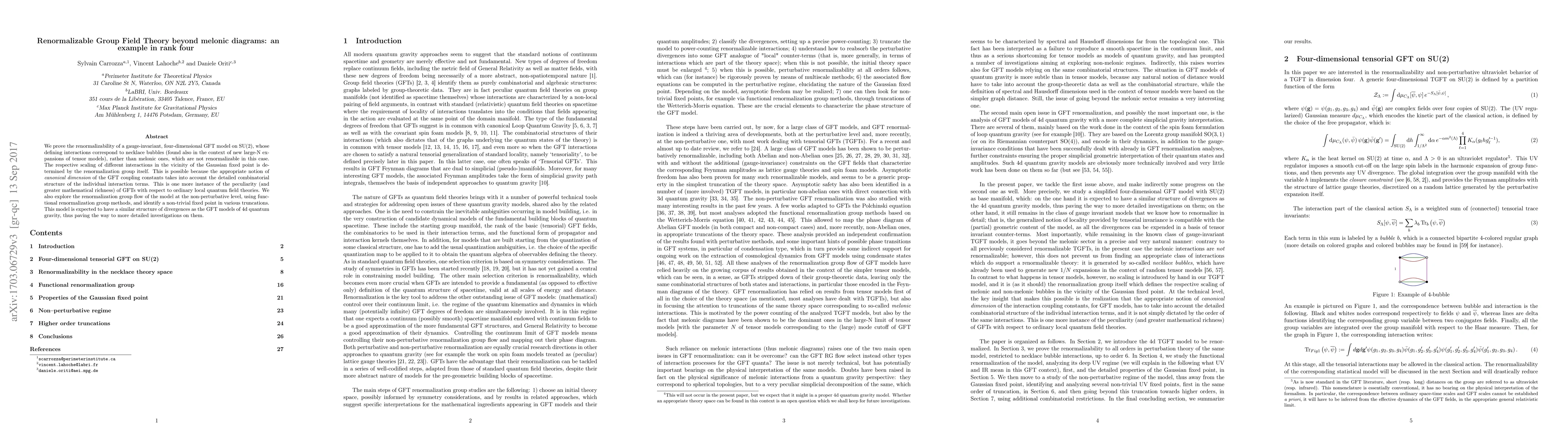 We prove the renormalizability of a gauge-invariant, four-dimensional GFT model on SU(2), whose defining interactions correspond to necklace bubbles (found also in the context of new large-N expansions of tensor models), rather than melonic ones, which are not renormalizable in this case. The respective scaling of different interactions in the vicinity of the Gaussian fixed point is determined by the renormalization group itself. This is possible because the appropriate notion of canonical dimension of the GFT coupling constants takes into account the detailed combinatorial structure of the individual interaction terms. This is one more instance of the peculiarity (and greater mathematical richness) of GFTs with respect to ordinary local quantum field theories. We also explore the renormalization group flow of the model at the non-perturbative level, using functional renormalization group methods, and identify a non-trivial fixed point in various truncations. This model is expected to have a similar structure of divergences as the GFT models of 4d quantum gravity, thus paving the way to more detailed investigations on them.