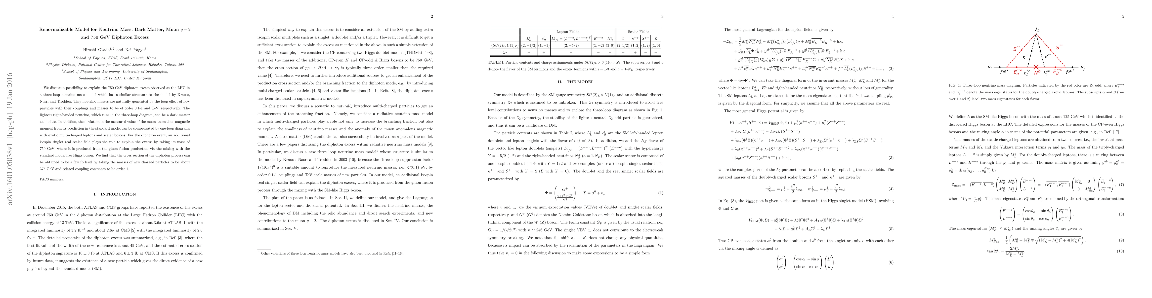 This paper proposes a renormalizable model explaining the 750 GeV diphoton excess at the LHC through a three-loop neutrino mass mechanism, where new particles with TeV-scale masses generate tiny neutrino masses. The lightest right-handed neutrino serves as a dark matter candidate, while exotic multi-charged leptons and scalars address the muon's anomalous magnetic moment deviation.