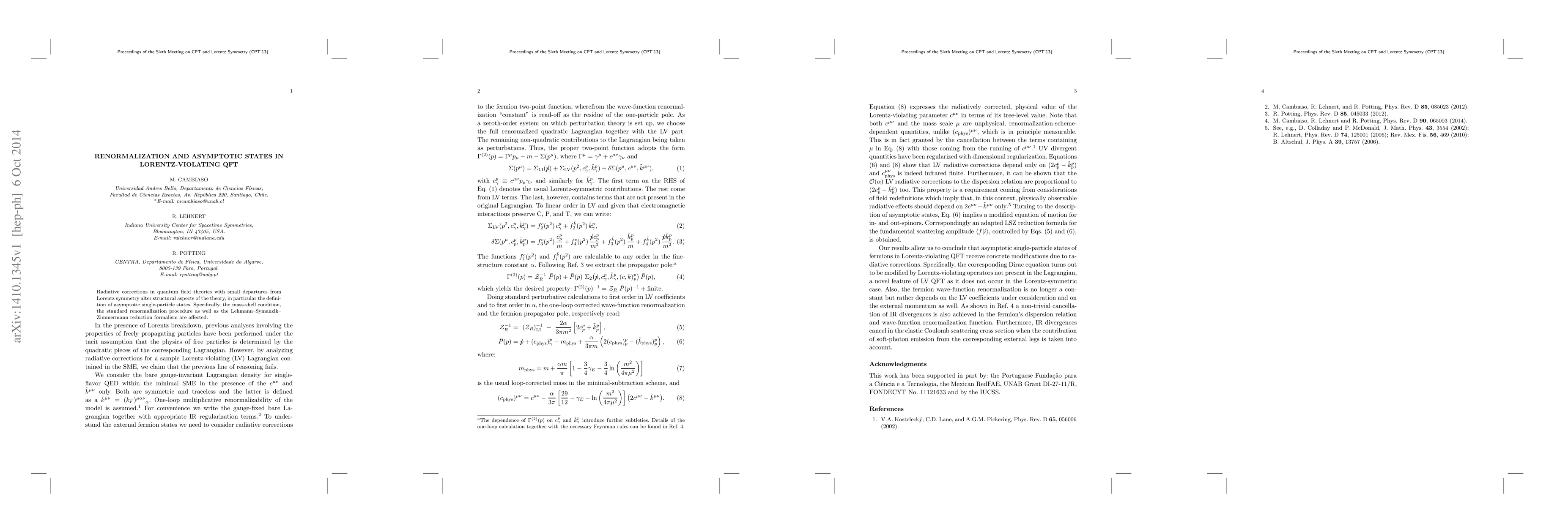 Radiative corrections in quantum field theories with small departures from Lorentz symmetry alter structural aspects of the theory, in particular the definition of asymptotic single-particle states. Specifically, the mass-shell condition, the standard renormalization procedure as well as the Lehmann-Symanzik-Zimmermann reduction formalism are affected.