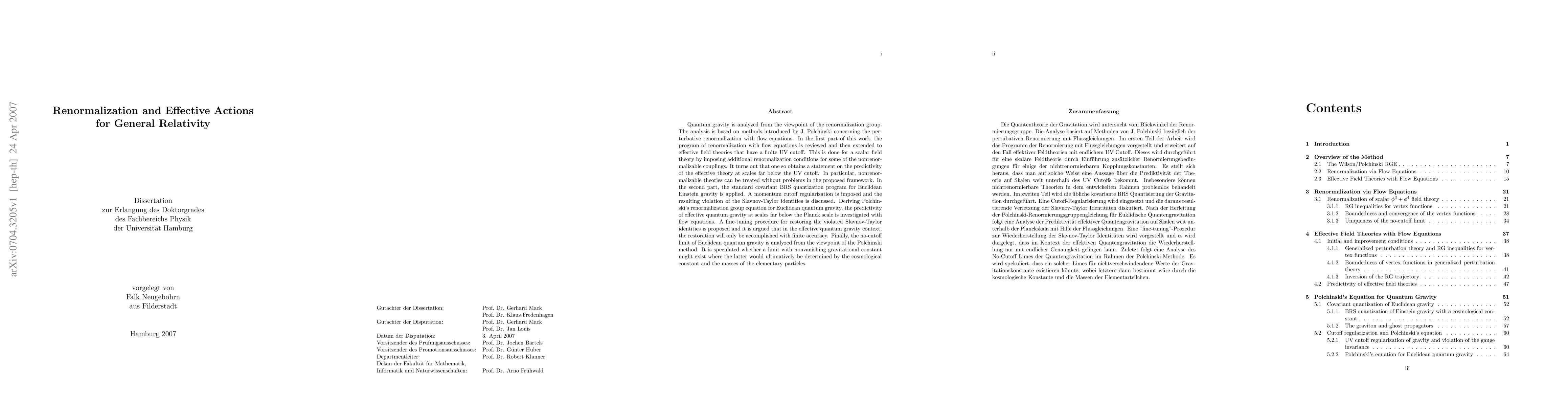 This paper explores quantum gravity through renormalization group methods, applying Polchinski's perturbative renormalization with flow equations to effective field theories. It investigates the predictivity of effective quantum gravity at scales below the Planck scale and proposes a fine-tuning procedure to restore violated Slavnov-Taylor identities, suggesting that restoration can only be achieved with finite accuracy.