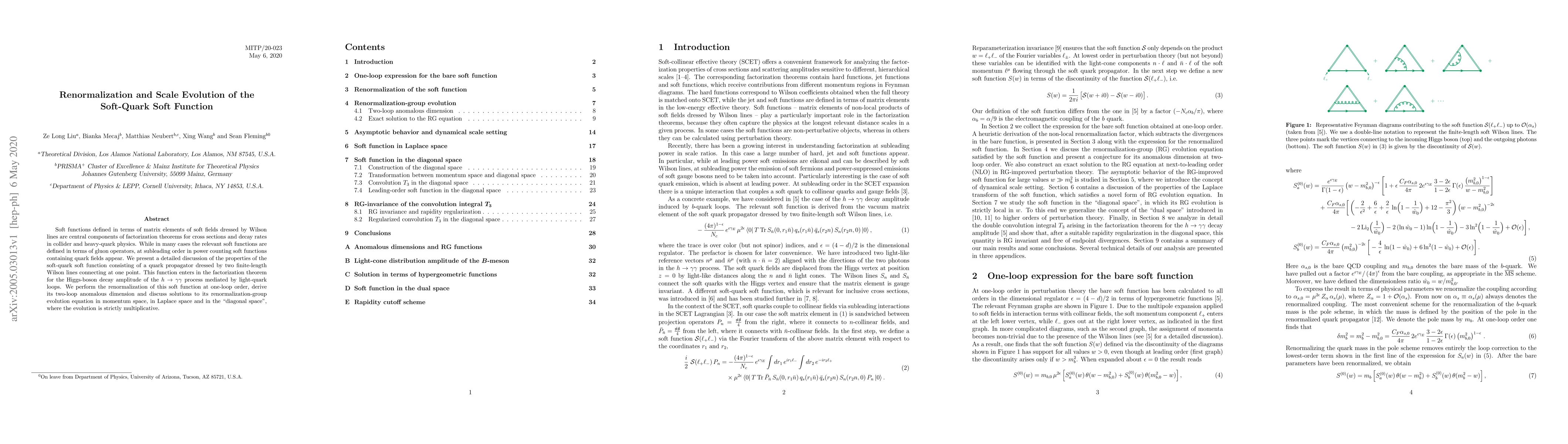 Researchers study the soft-quark soft function, a key component in factorization theorems for particle physics processes, and derive its renormalization properties at one- and two-loop orders.