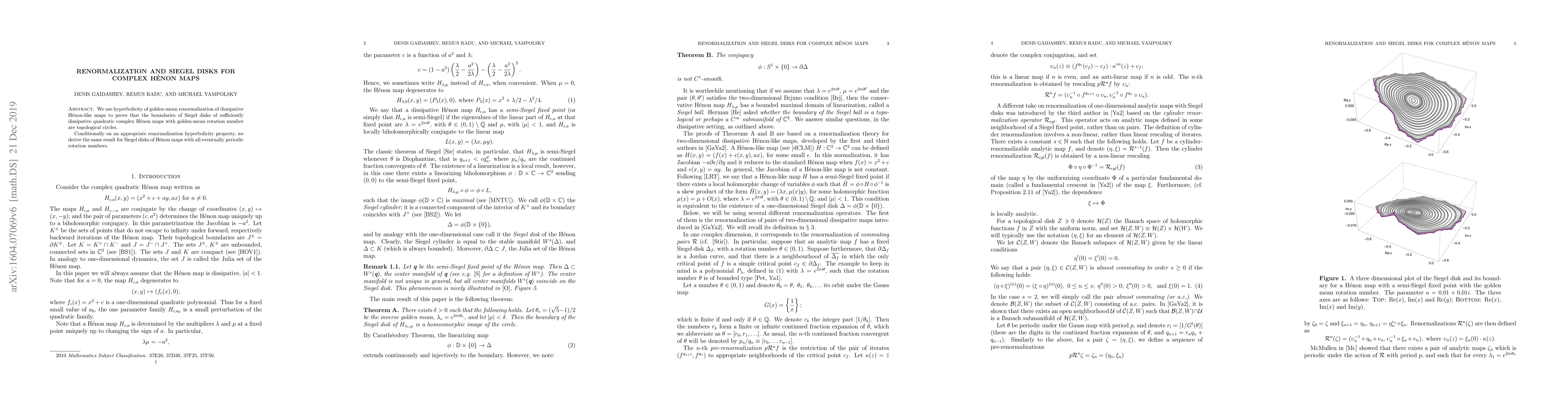 Summary: This paper proves that the boundaries of Siegel disks for sufficiently dissipative quadratic complex H\'enon maps with golden-mean rotation number are topological circles, leveraging the hyperbolicity of golden-mean renormalization. It also extends this result to H\'enon maps with all eventually periodic rotation numbers under certain renormalization conditions.