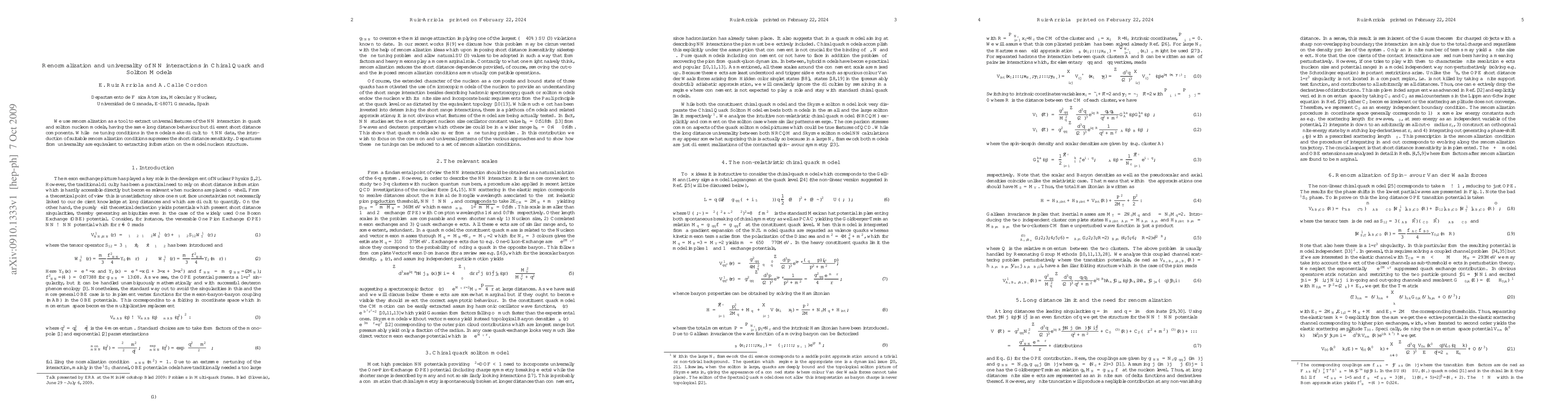 We use renormalization as a tool to extract universal features of the NN interaction in quark and soliton nucleon models, having the same long distance behaviour but different short distance components. While fine tuning conditions in the models make difficult to fit NN data, the introduction of suitable renormalization conditions supresses the short distance sensitivity. Departures from universality are equivalent to extracting information on the model nucleon structure.