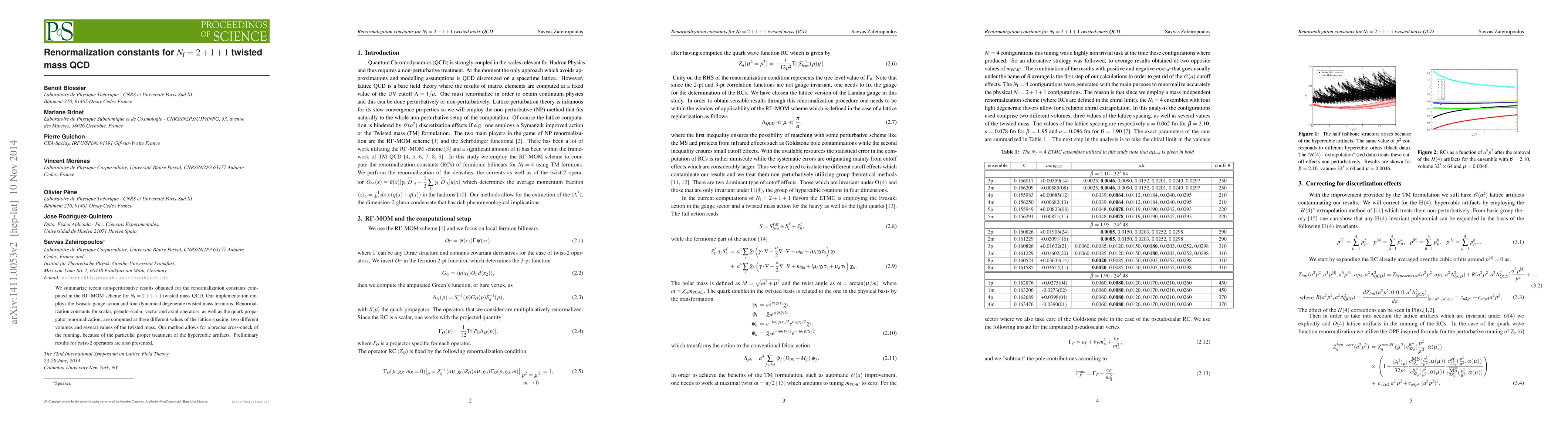 We summarize recent non-perturbative results obtained for the renormalization constants computed in the RI'-MOM scheme for $N_{\rm f}=2+1+1$ twisted mass QCD. Our implementation employs the Iwasaki gauge action and four dynamical degenerate twisted mass fermions. Renormalization constants for scalar, pseudo-scalar, vector and axial operators, as well as the quark propagator renormalization, are computed at three different values of the lattice spacing, two different volumes and several values of the twisted mass. Our method allows for a precise cross-check of the running, because of the particular proper treatment of the hypercubic artifacts. Preliminary results for twist-2 operators are also presented.