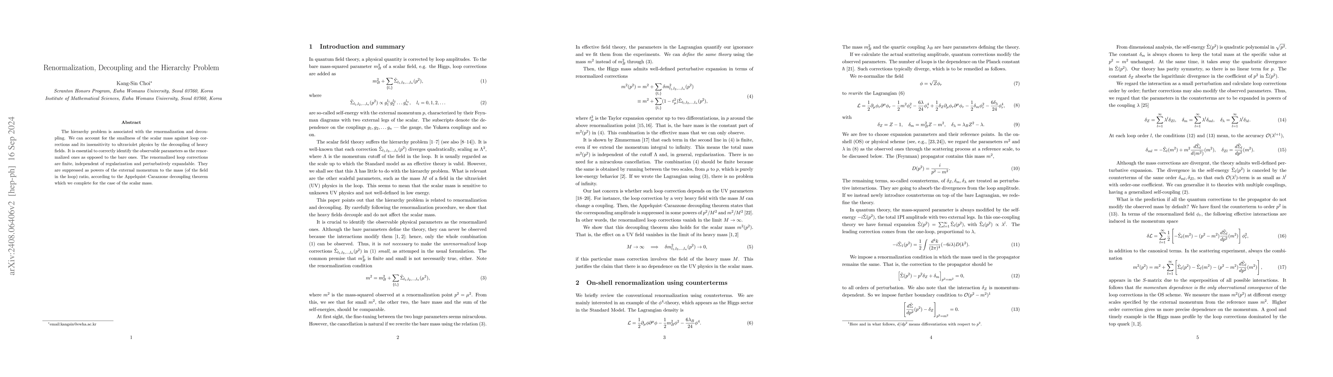 This paper addresses the hierarchy problem by explaining how renormalization and decoupling help maintain the smallness of scalar mass against loop corrections, emphasizing the importance of using renormalized parameters over bare ones, and presenting a completed version of the Appelquist-Carazzone decoupling theorem for scalar mass.