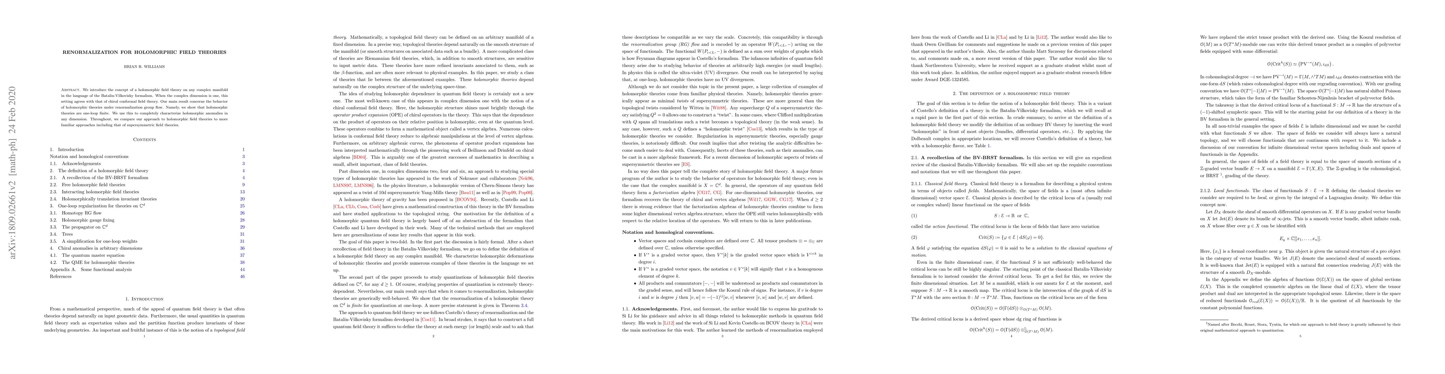 This paper introduces holomorphic field theories on complex manifolds using the Batalin-Vilkovisky formalism and demonstrates that these theories are one-loop finite under renormalization group flow, thereby characterizing holomorphic anomalies across dimensions. It compares this novel approach to traditional supersymmetric field theories.