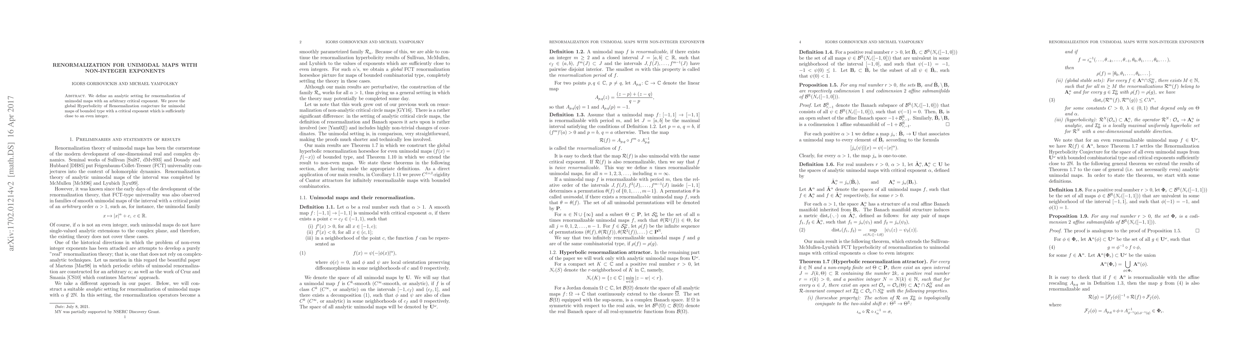 This paper establishes an analytic framework for the renormalization of unimodal maps with non-integer critical exponents and proves the global Hyperbolicity of Renormalization conjecture for such maps when their critical exponent is near an even integer.