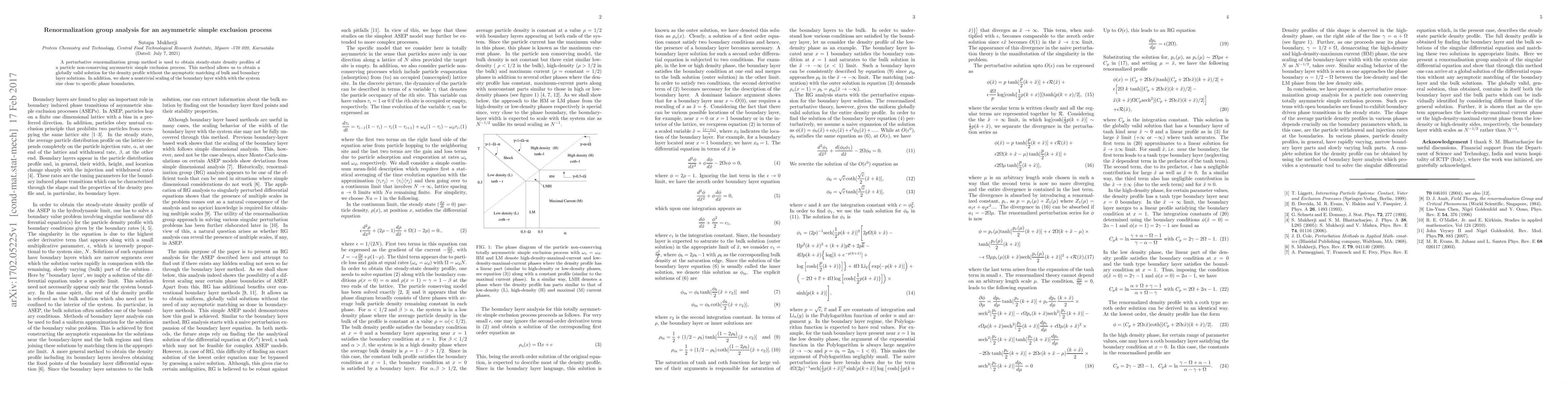 A perturbative renormalization group method is used to obtain steady-state density profiles of a particle non-conserving asymmetric simple exclusion process. This method allows us to obtain a globally valid solution for the density profile without the asymptotic matching of bulk and boundary layer solutions. In addition, we show a nontrivial scaling of the boundary layer width with the system size close to specific phase boundaries.