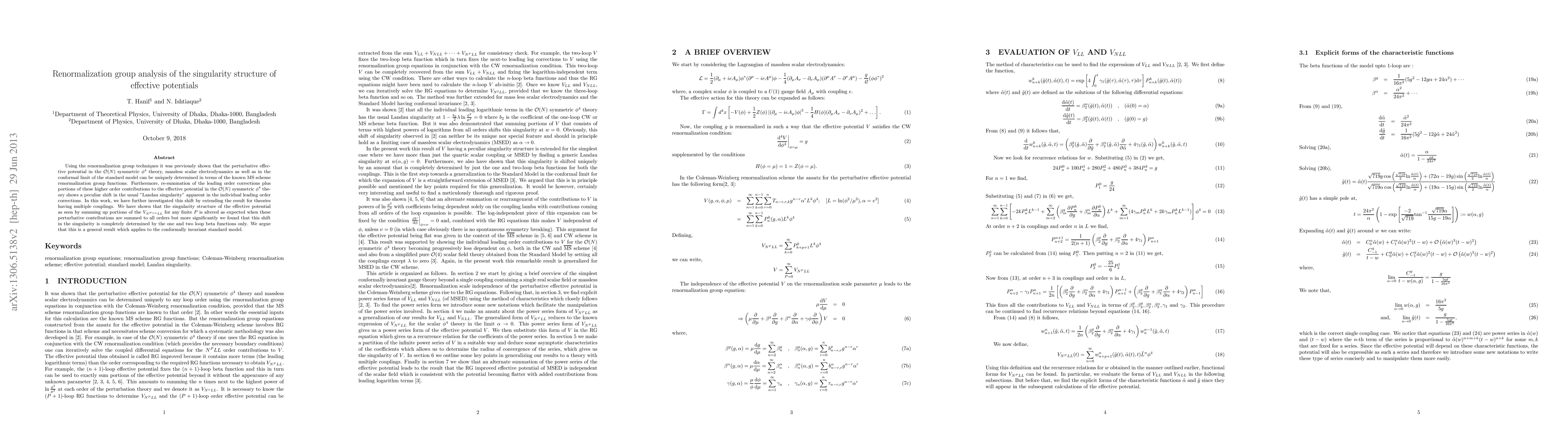 Using the renormalization group techniques it was previously shown that the perturbative effective potential in the $\mathcal{O}(N)$ symmetric $\phi^4$ theory, massless scalar electrodynamics as well as in the conformal limit of the standard model can be uniquely determined in terms of the known MS scheme renormalization group functions. Furthermore, re-summation of the leading order corrections plus portions of these higher order contributions to the effective potential in the $\mathcal{O}(N)$ symmetric $\phi^4$ theory shows a peculiar shift in the usual "Landau singularity" apparent in the individual leading order corrections. In this work, we have further investigated this shift by extending the result for theories having multiple couplings. We have shown that the singularity structure of the effective potential as seen by summing up portions of the $V_{N^{P+n}LL}$ for any finite $P$ is altered as expected when these perturbative contributions are summed to all orders but more significantly we found that this shift in the singularity is completely determined by the one and two loop beta functions only. We argue that this is a general result which applies to the conformally invariant standard model.