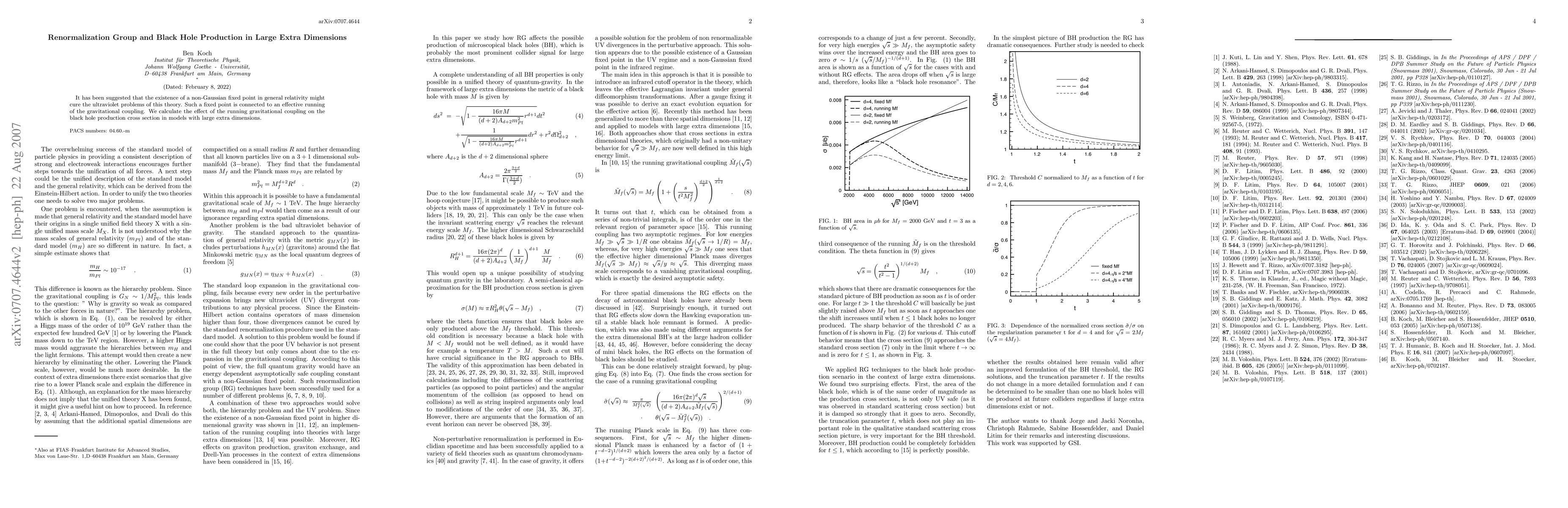 This paper investigates the impact of a non-Gaussian fixed point in general relativity on the ultraviolet problems of the theory, focusing on the running gravitational coupling. It calculates the effect of this coupling on black hole production in models with large extra dimensions.