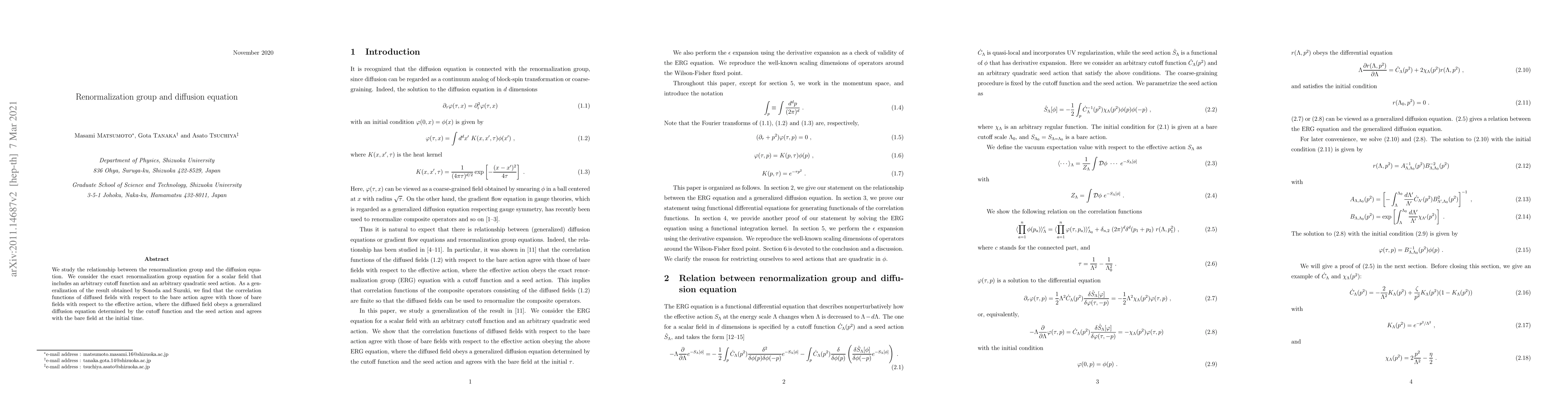 This paper explores the connection between the renormalization group and the diffusion equation, demonstrating that correlation functions for diffused fields match those for bare fields, with the diffused field obeying a generalized diffusion equation defined by the cutoff function and seed action.