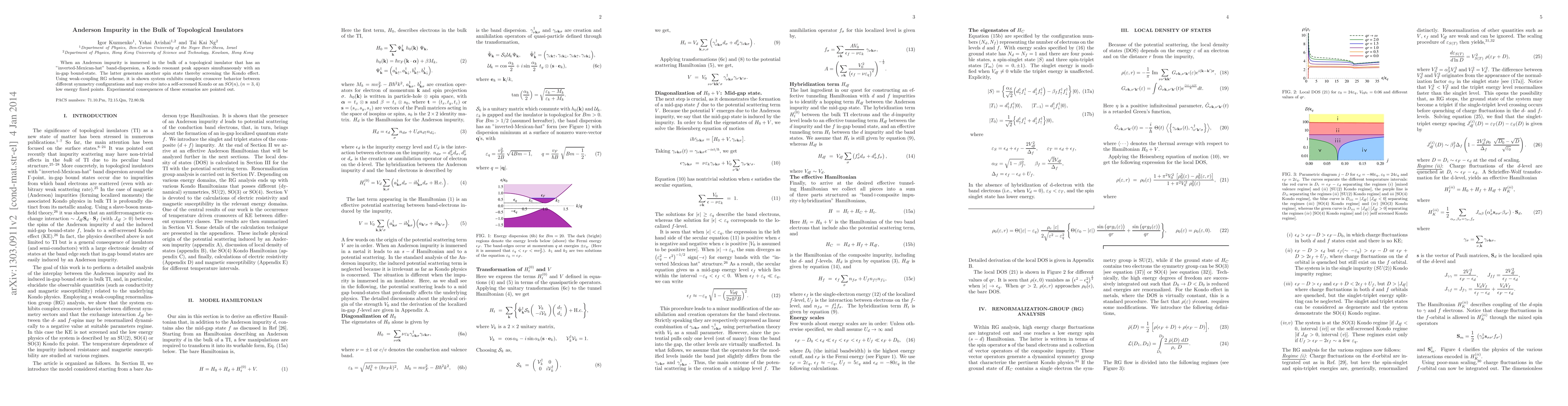 This paper investigates the Kondo effect in topological insulators with an Anderson impurity, revealing complex crossover behavior and potential evolution into a self-screened-Kondo or SO(3) low energy state. The study employs a renormalization group approach to understand the interplay between the impurity and the topological properties.