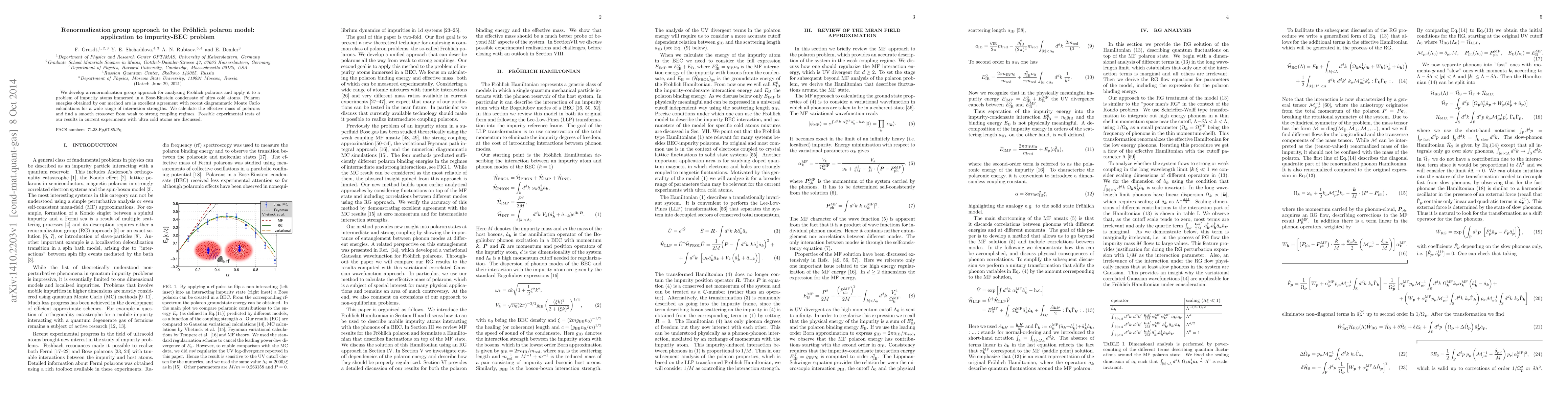 The paper introduces a renormalization group method for studying Fröhlich polarons and applies it to impurity atoms in a Bose-Einstein condensate, showing good agreement with Monte Carlo simulations. The study reveals a smooth transition between weak and strong coupling regimes and discusses potential experimental validations in cold atom experiments.
