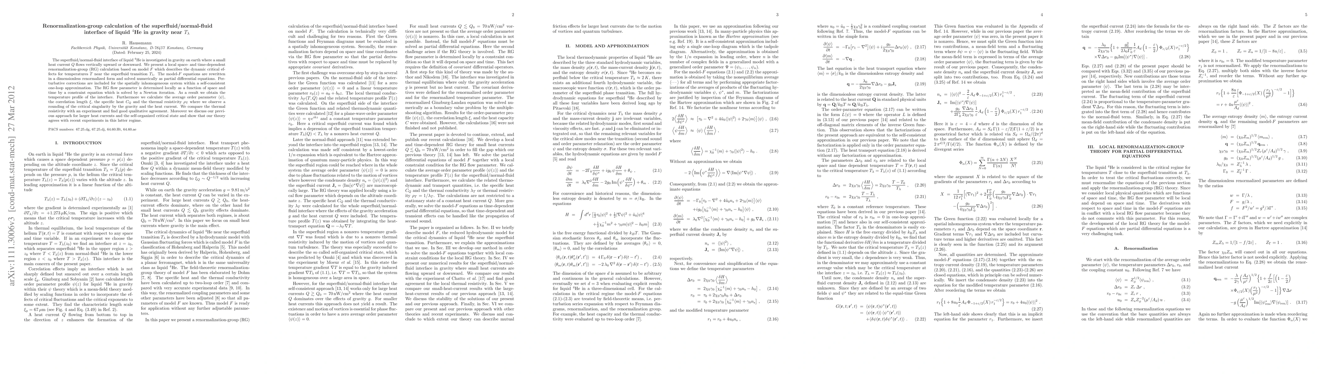 This paper presents a renormalization-group calculation to study the dynamic critical behavior of the superfluid/normal-fluid interface in liquid 4He under gravity near the superfluid transition temperature T_lambda. The authors find a rounding of the critical singularity due to gravity and heat current, and show good qualitative agreement with experimental measurements of thermal resistivity.