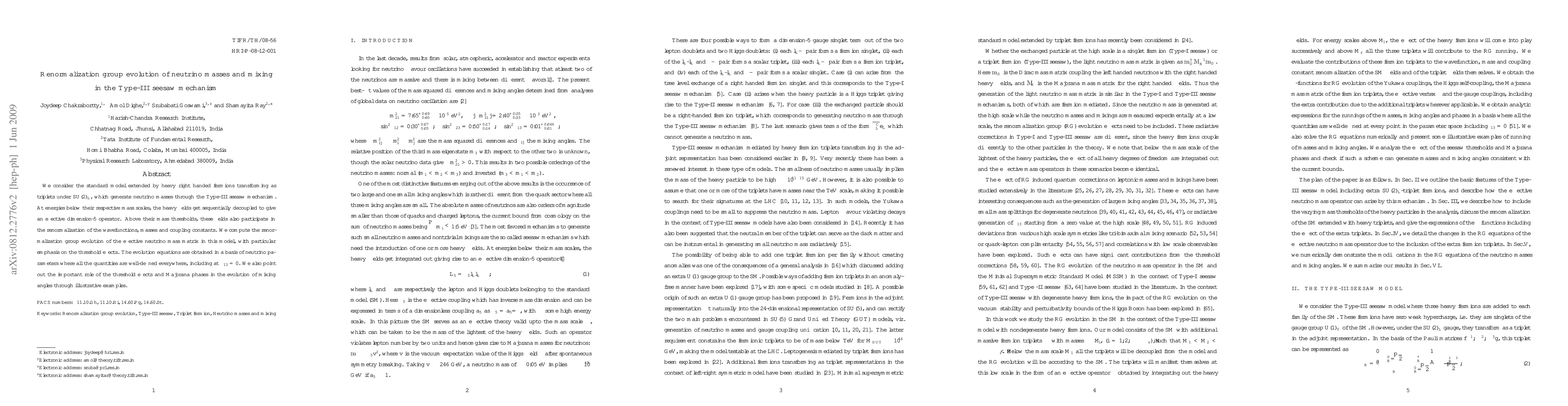 This paper studies the renormalization group evolution of neutrino masses and mixing in the Type-III seesaw mechanism, where heavy right-handed fermions generate neutrino masses. It focuses on the threshold effects and the evolution of mixing angles, providing a comprehensive analysis of the effective neutrino mass matrix.