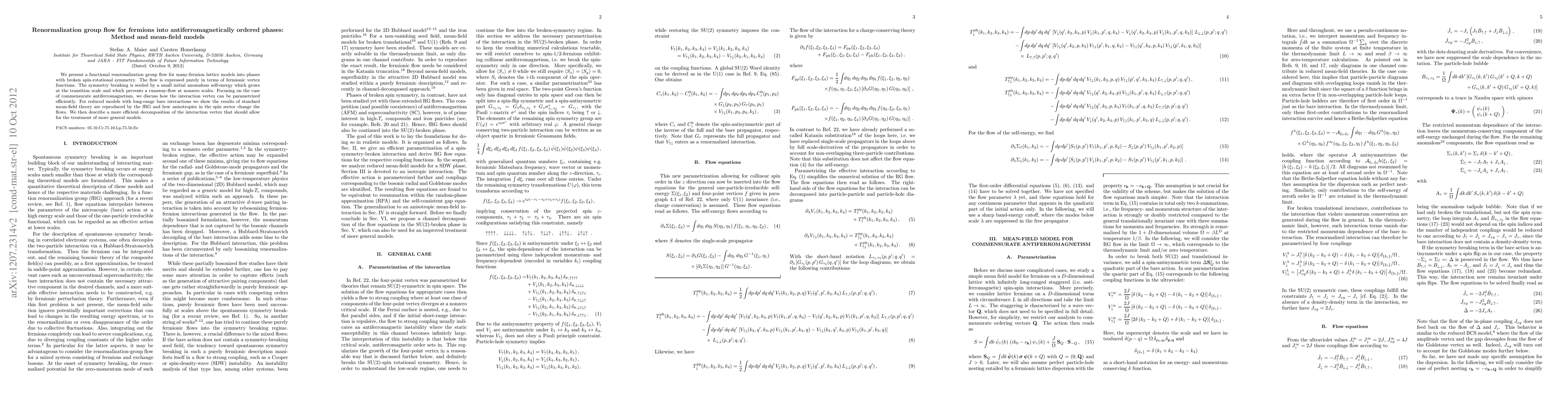 This paper introduces a functional renormalization group (fRG) approach to study the transition of many-fermion lattice models into antiferromagnetically ordered phases, focusing on the growth of an anomalous self-energy that drives symmetry breaking. The authors also discuss efficient parametrizations for the interaction vertex and compare fRG results with standard mean-field theory.