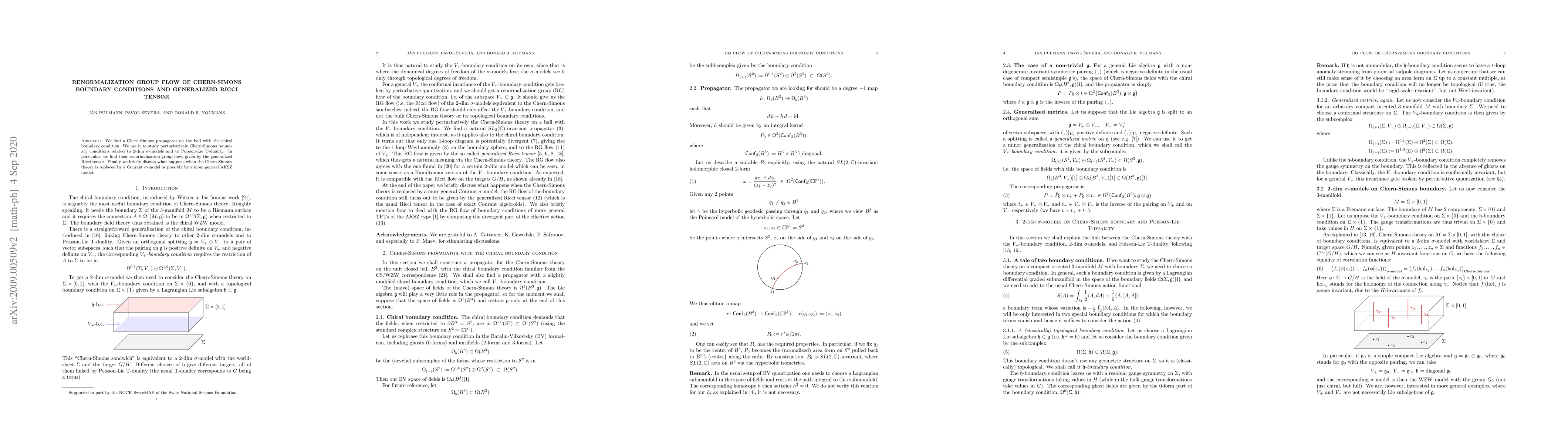 We find a Chern-Simons propagator on the ball with the chiral boundary condition. We use it to study perturbatively Chern-Simons boundary conditions related to 2-dim $\sigma$-models and to Poisson-Lie T-duality. In particular, we find their renormalization group flow, given by the generalized Ricci tensor. Finally we briefly discuss what happens when the Chern-Simons theory is replaced by a Courant $\sigma$-model or possibly by a more general AKSZ model.