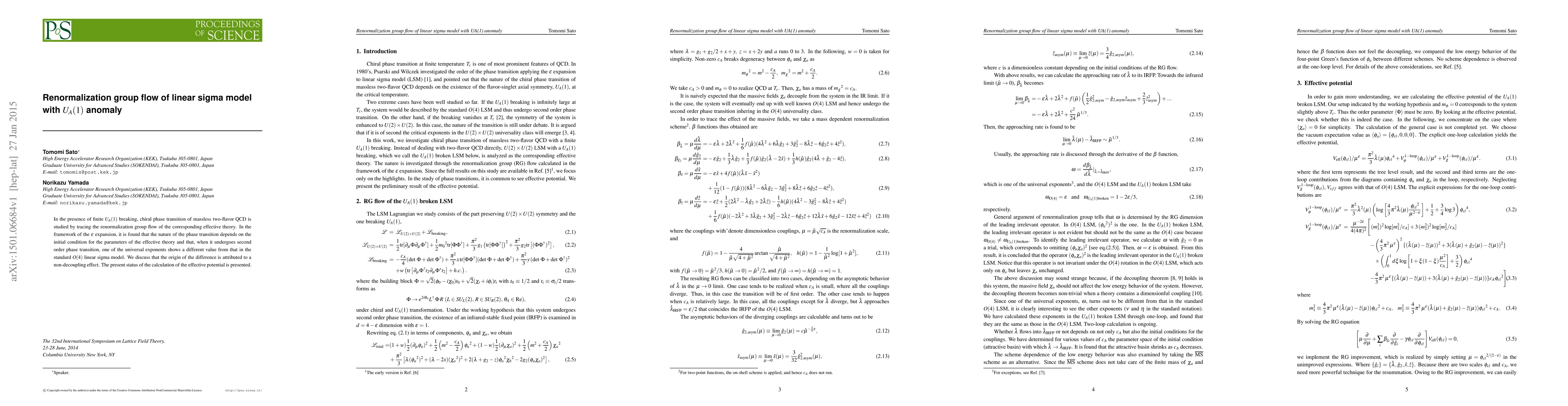 Researchers studied the renormalization group flow of a linear sigma model with $U_A(1)$ anomaly, finding that the nature of phase transitions depends on initial conditions and exhibiting a non-decoupling effect.