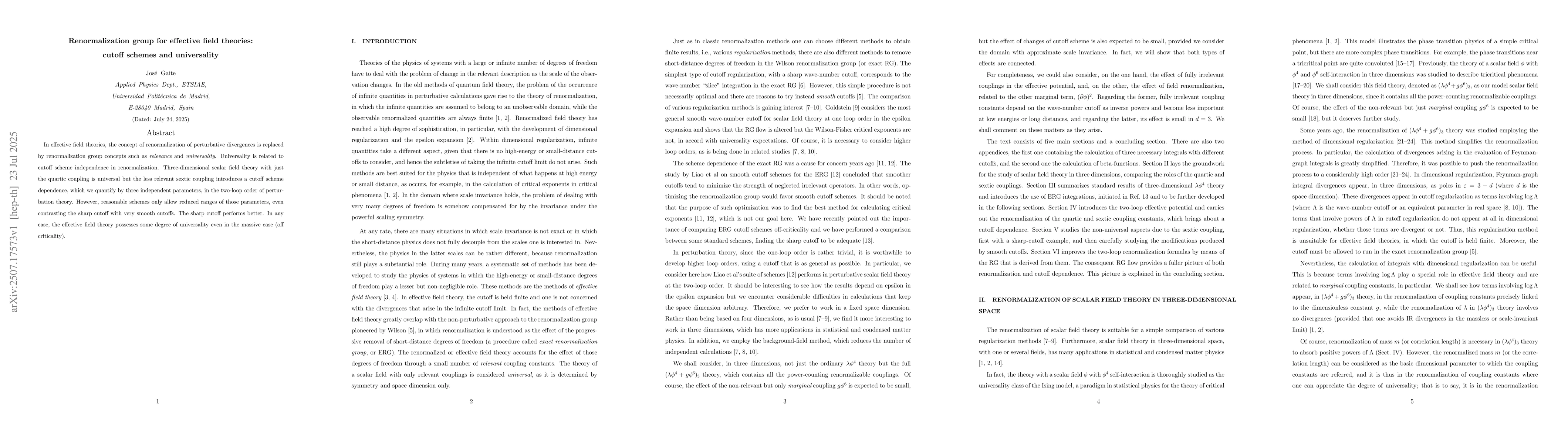 In effective field theories, the concept of renormalization of perturbative divergences is replaced by renormalization group concepts such as relevance and universality. Universality is related to cutoff scheme independence in renormalization. Three-dimensional scalar field theory with just the quartic coupling is universal but the less relevant sextic coupling introduces a cutoff scheme dependence, which we quantify by three independent parameters, in the two-loop order of perturbation theory. However, reasonable schemes only allow reduced ranges of those parameters, even contrasting the sharp cutoff with very smooth cutoffs. The sharp cutoff performs better. In any case, the effective field theory possesses some degree of universality even in the massive case (off criticality).