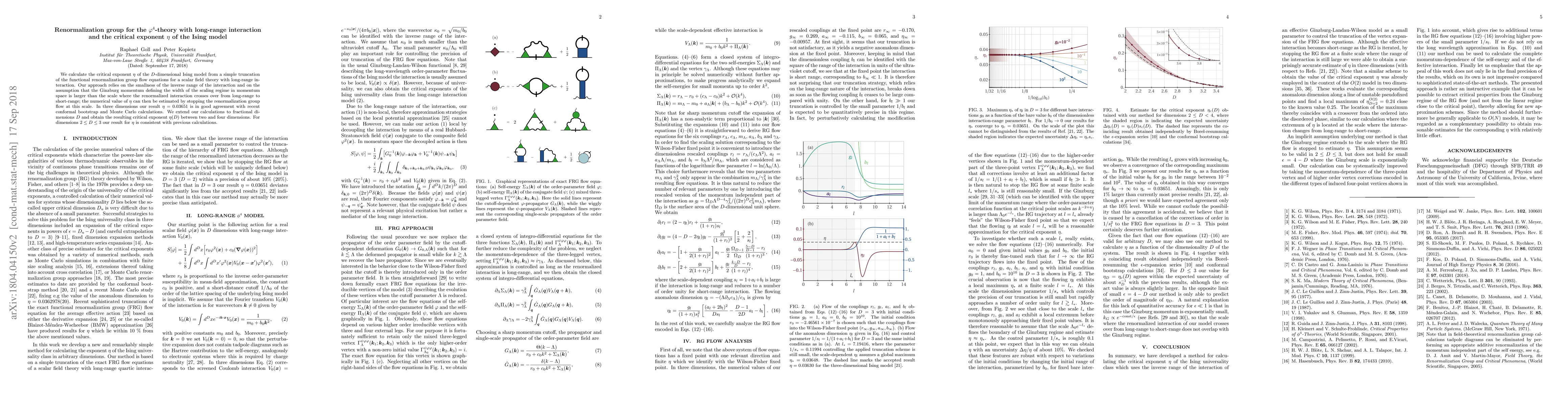 We calculate the critical exponent $\eta$ of the $D$-dimensional Ising model from a simple truncation of the functional renormalization group flow equations for a scalar field theory with long-range interaction. Our approach relies on the smallness of the inverse range of the interaction and on the assumption that the Ginzburg momentum defining the width of the scaling regime in momentum space is larger than the scale where the renormalized interaction crosses over from long-range to short-range; the numerical value of $\eta$ can then be estimated by stopping the renormalization group flow at this scale. In three dimensions our result $\eta = 0.03651$ is in good agreement with recent conformal bootstrap and Monte Carlo calculations. We extend our calculations to fractional dimensions $D$ and obtain the resulting critical exponent $\eta(D)$ between two and four dimensions. For dimensions $2\leq D \leq 3$ our result for $\eta$ is consistent with previous calculations.