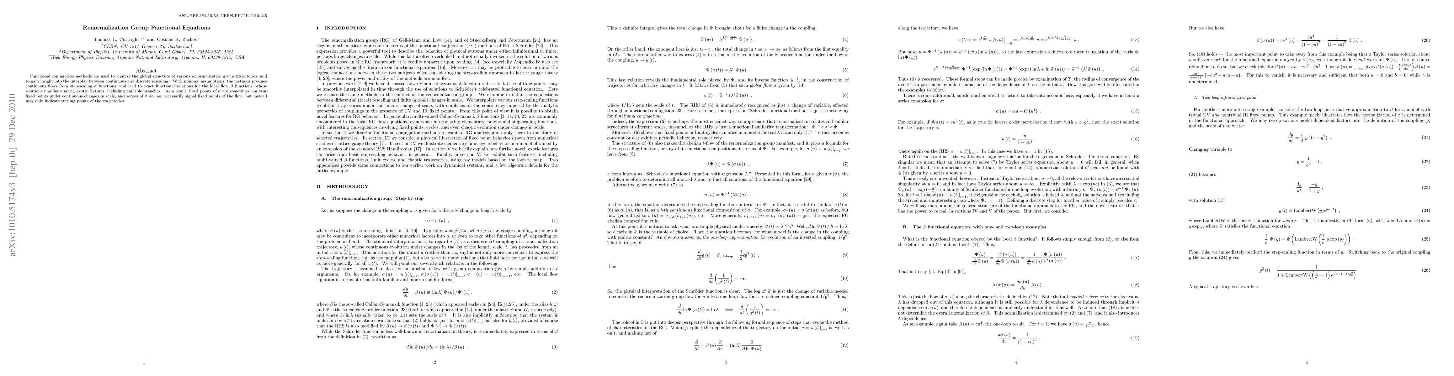 Functional conjugation methods are used to analyze the global structure of various renormalization group trajectories, and to gain insight into the interplay between continuous and discrete rescaling. With minimal assumptions, the methods produce continuous flows from step-scaling {\sigma} functions, and lead to exact functional relations for the local flow {\beta} functions, whose solutions may have novel, exotic features, including multiple branches. As a result, fixed points of {\sigma} are sometimes not true fixed points under continuous changes in scale, and zeroes of {\beta} do not necessarily signal fixed points of the flow, but instead may only indicate turning points of the trajectories.