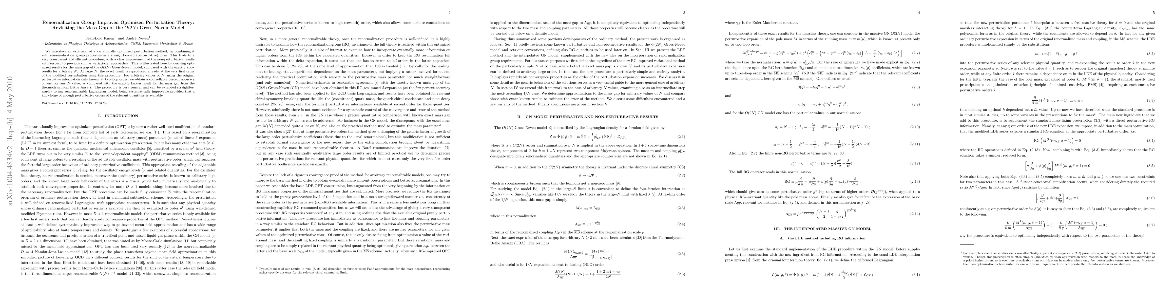 This paper presents a novel optimization of perturbation theory enhanced by renormalization group techniques to accurately determine the mass gap in the O(2N) Gross-Neveu model, achieving near-exact results for large N and percent-level accuracy for arbitrary N compared to known exact solutions. The method is general and can be applied to other renormalizable models.