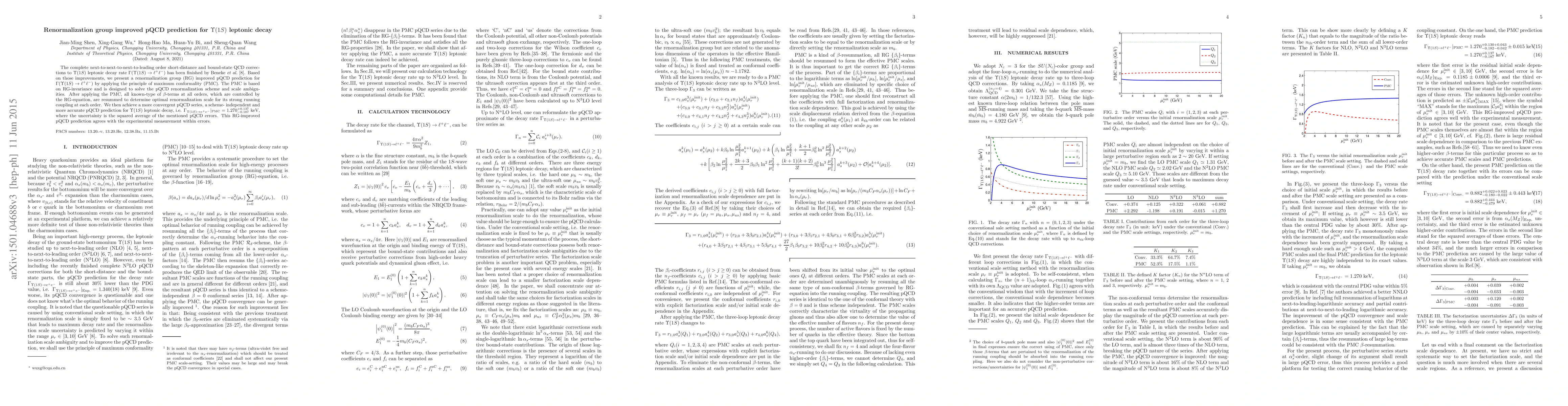 This paper presents a renormalization group improved pQCD prediction for the $\Upsilon(1S)$ leptonic decay rate using the principle of maximum conformality (PMC). The PMC method resolves pQCD renormalization scheme and scale ambiguities, leading to a more accurate prediction of $\Gamma_{\Upsilon(1S) \to e^+ e^-} = 1.270^{+0.137}_{-0.187}$ keV, which aligns with experimental measurements.