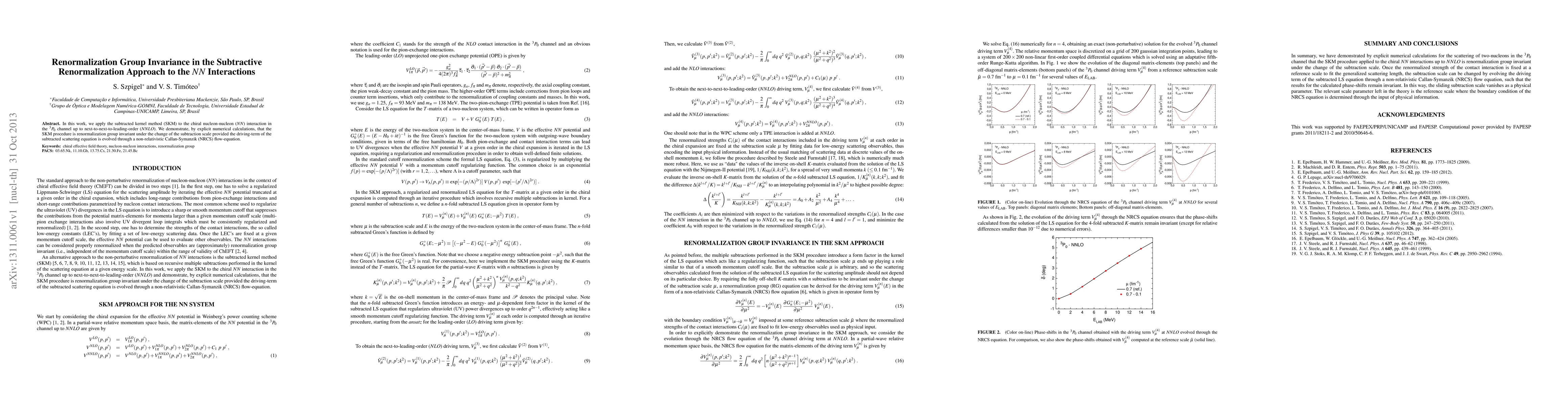 This paper applies the subtracted kernel method (SKM) to study the chiral nucleon-nucleon interaction in the $^3P_0$ channel up to next-to-next-to-leading-order (NNLO). It shows that the SKM is renormalization group invariant when the driving-term evolves via a non-relativistic Callan-Symanzik flow-equation.