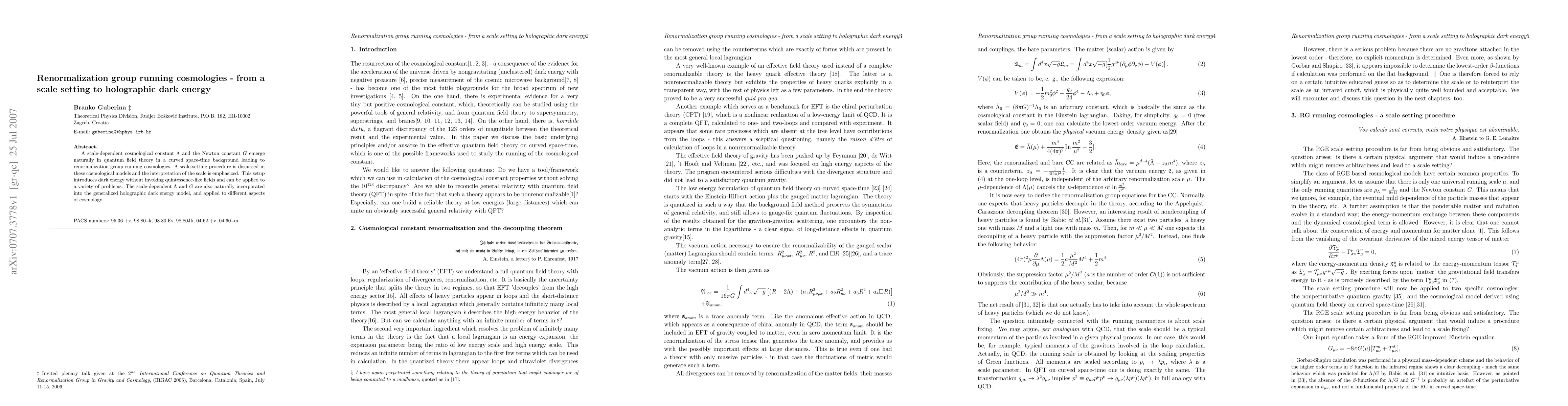 Researchers propose a new cosmological model using renormalization group running cosmologies, which naturally introduces dark energy without invoking quintessence-like fields. This approach can be applied to various problems in cosmology, including the behavior of the cosmological constant and Newton's constant.