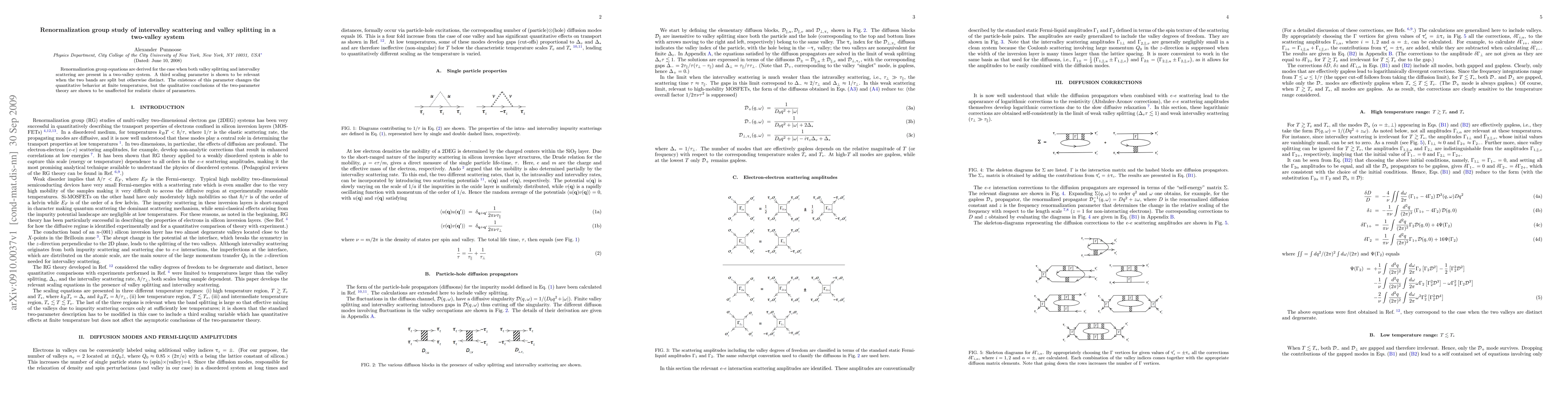 Renormalization group equations are derived for the case when both valley splitting and intervalley scattering are present in a two-valley system. A third scaling parameter is shown to be relevant when the two bands are split but otherwise distinct. The existence of this parameter changes the quantitative behavior at finite temperatures, but the qualitative conclusions of the two-parameter theory are shown to be unaffected for realistic choice of parameters.