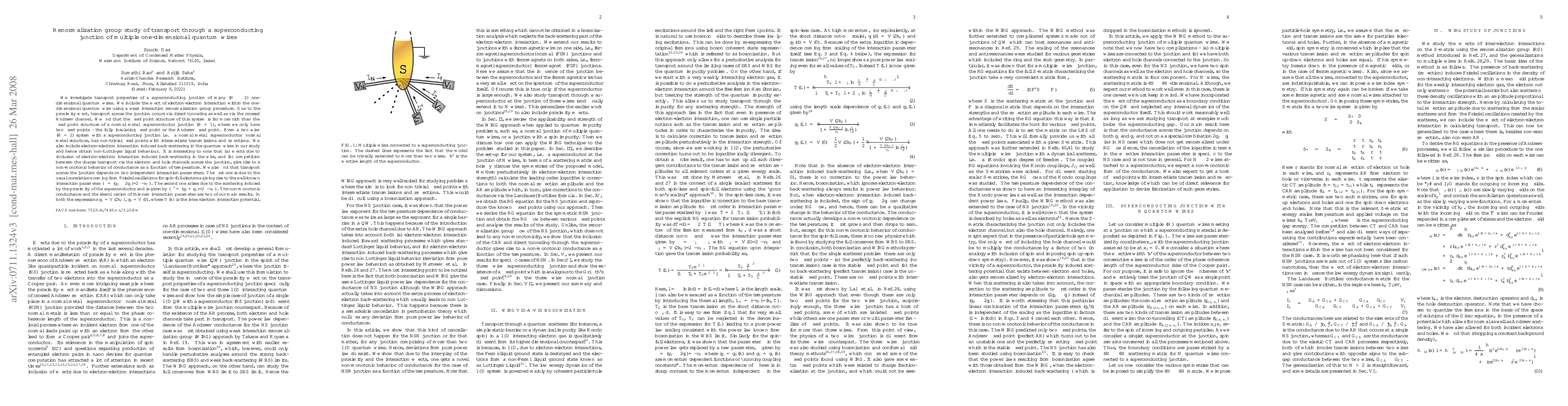 We investigate transport properties of a superconducting junction of many ($N \ge 2$) one-dimensional quantum wires. We include the effectofelectron-electron interaction within the one-dimensional quantum wire using a weak interaction renormalization group procedure. Due to the proximity effect, transport across the junction occurs via direct tunneling as well as via the crossed Andreev channel. We find that the fixed point structure of this system is far more rich than the fixed point structure of a normal metal$-$superconductor junction ($N = 1$), where we only have two fixed points - the fully insulating fixed point or the Andreev fixed point. Even a two wire (N=2)system with a superconducting junction i.e. a normalmetal$-$superconductor$-$normal metal structure, has non-trivialfixed points with intermediate transmissions and reflections. We also include electron-electron interaction induced back-scattering in the quantum wires in our study and hence obtain non-Luttinger liquid behaviour. It is interesting to note that {\textsl{(a)}} effects due to inclusion of electron-electron interaction induced back-scattering in the wire, and {\textsl{(b)}} competition between the charge transport via the electron and hole channels across the junction, give rise to a non-monotonic behavior of conductance as a functionof temperature. We also find that transport across the junction depends on two independent interaction parameters. The first one is due to the usual correlations coming from Friedel oscillations for spin-full electrons giving rise to the well-known interaction parameter (${{\alpha = (g_2-2g_1)/2 \pi \hbar v_F}}$). The second one arises due to the scattering induced by the proximity of the superconductor and is given by(${{\alpha^\prime = (g_2 + g_1)/2 \pi \hbar v_F}}$).