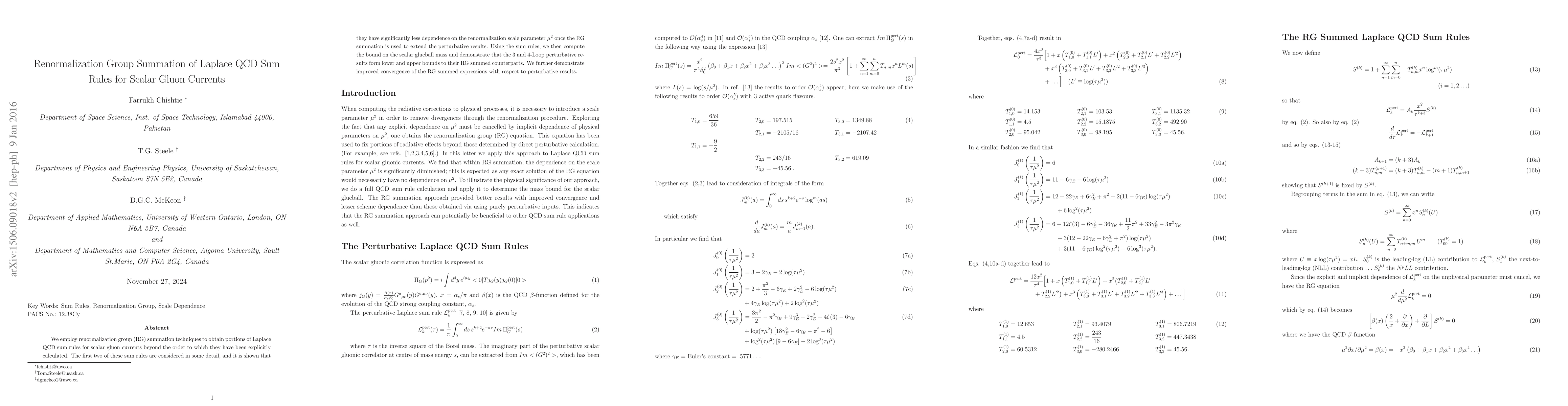 This paper utilizes renormalization group summation to extend the applicability of Laplace QCD sum rules for scalar gluon currents beyond their current perturbative order. The study shows reduced dependence on the renormalization scale and improved convergence, leading to a more accurate bound on the scalar glueball mass.